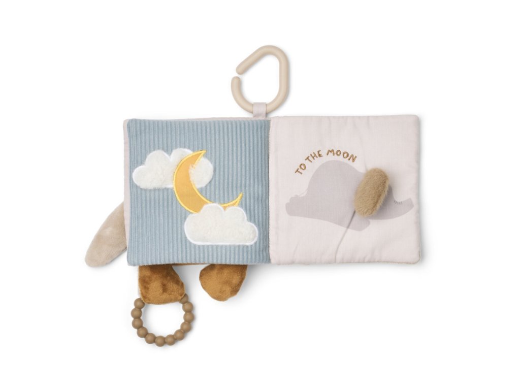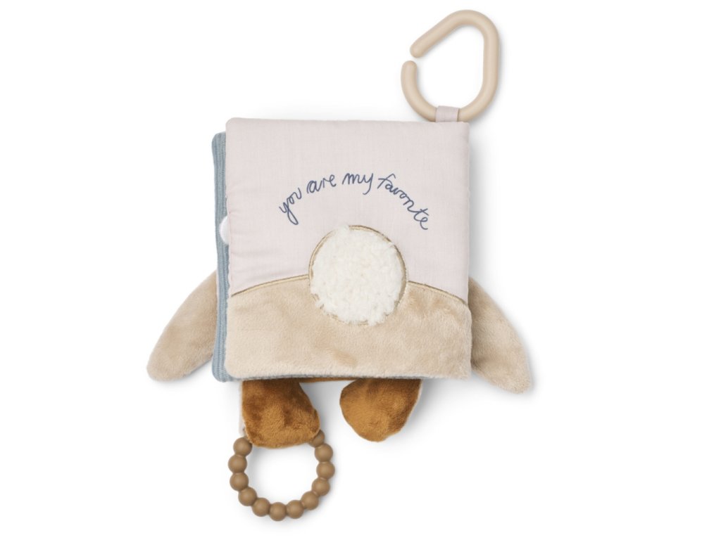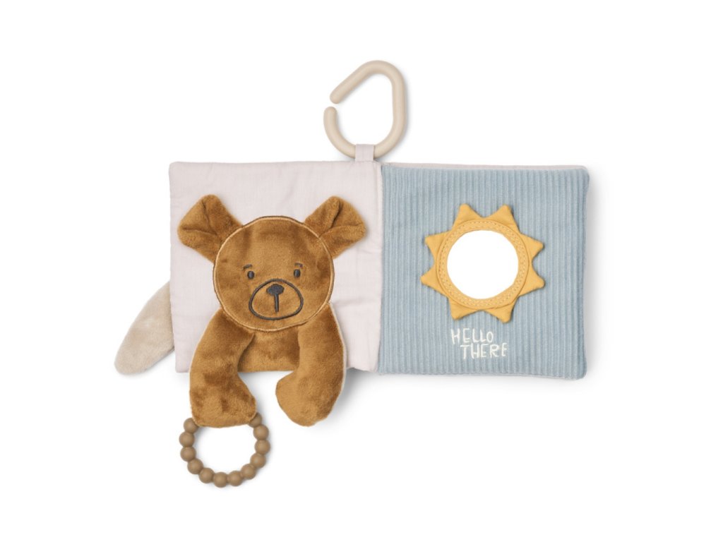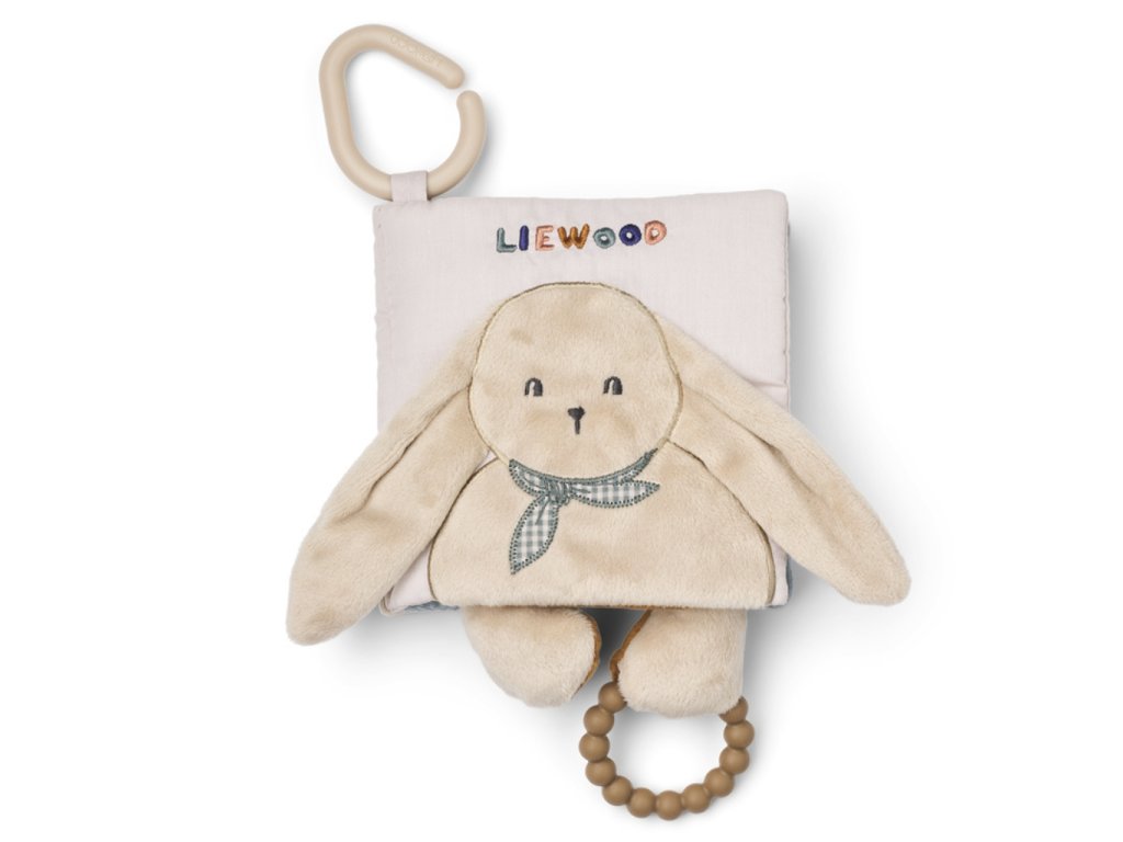 Plyšová knížka s králíčkem na přední straně a jeho roztomilým ocáskem na zadní straně pro miminka od dánské značky Liewood. Knížka má malý kompaktní rozměr a krásně sedne do dětských ručiček. Ideální na hraní i pro stimulaci a rozvoj smyslů díky kombinaci různých materiálů. Součástí je i praktické silikonové kousátko a háček na zavěšení nad postýlku, hrazdičku či do kočárku.