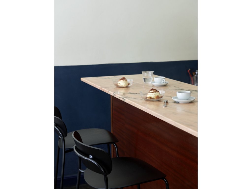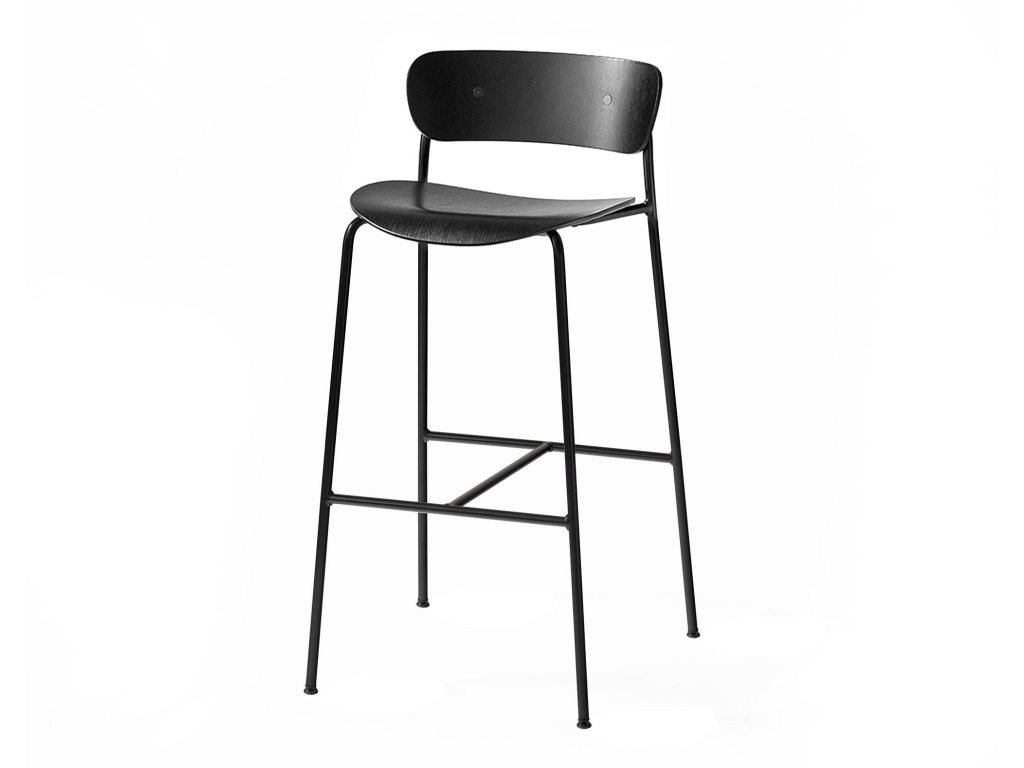 Spojení černě lakované ocelové podnože a dřevěného sedáku se promítá do všech kousků kolekce Pavilion, kterou pro dánskou značku &Tradition navrhlo studio Anderssen & Voll. Barová židle AV9 působí velmi esteticky, a díky ergonomickému tvarování je navíc velmi pohodlná i při delším sezení.