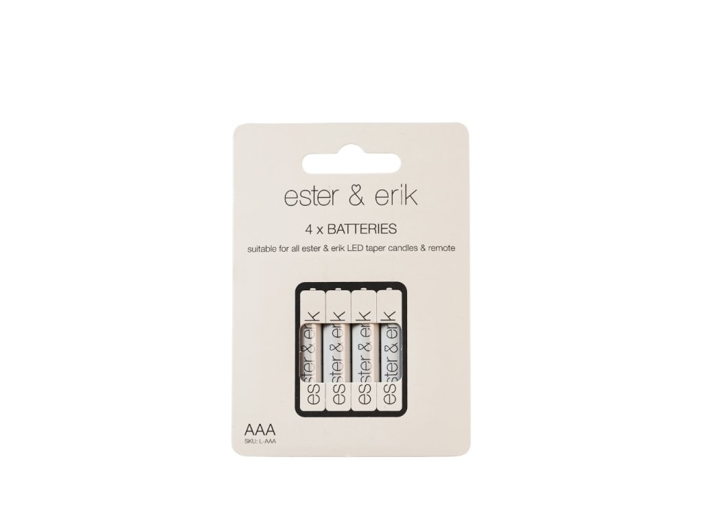 Baterie AAA jsou vhodné do LED svíček Taper od značky Ester & Erik. V balení jsou 4 kusy, které jsou určené pro 2 LED svíčky.