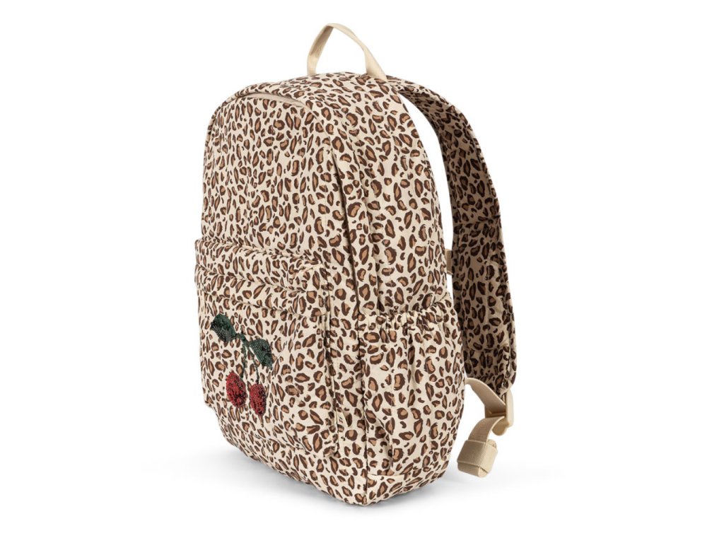 Stylový batůžek s leopardním vzorem od dánské značky Konges Sløjd si vaše holčičky zamilují. Bude je doprovázet na procházkách, na výletech, na kroužku nebo třeba ve školce či škole. Batůžek je vyrobený z vysoce odolného materiálu se speciální povrchovou úpravou Bionic Finish® Eco, která je vodoopudivá. To aby zvládl všechna malá i velká venkovní dobrodružství. Má nastavitelné ramenní popruhy, hrudní pás a vnější extra kapsu na láhev s vodou.