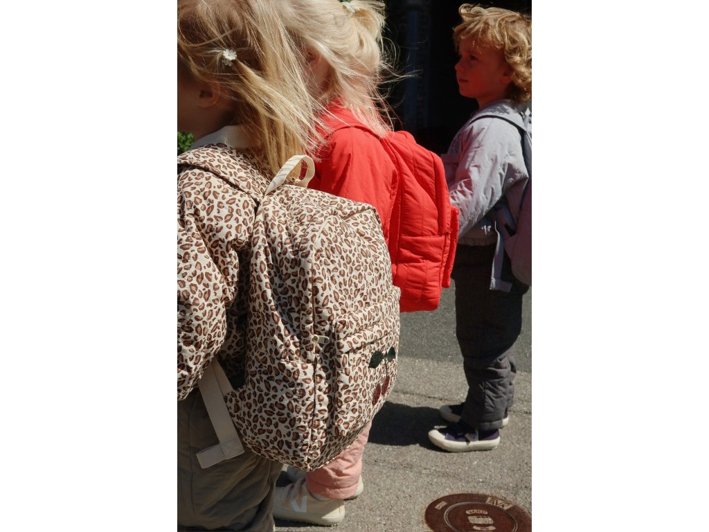 Batůžek s leopardím vzorem od značky Konges Sløjd je stylovým i praktickým společníkem pro vaše malé princezny. Batoh nabízí dostatek úložného prostoru na všechny potřebné nezbytnosti. Má jednu velkou hlavní kapsu, menší kapsu se zapínáním na zip v přední části a jednu boční kapsu na láhev. Díky nastavitelným ramenním popruhům a hrudnímu pásu hezky přilne k tělu a zajistí podporu zádům.