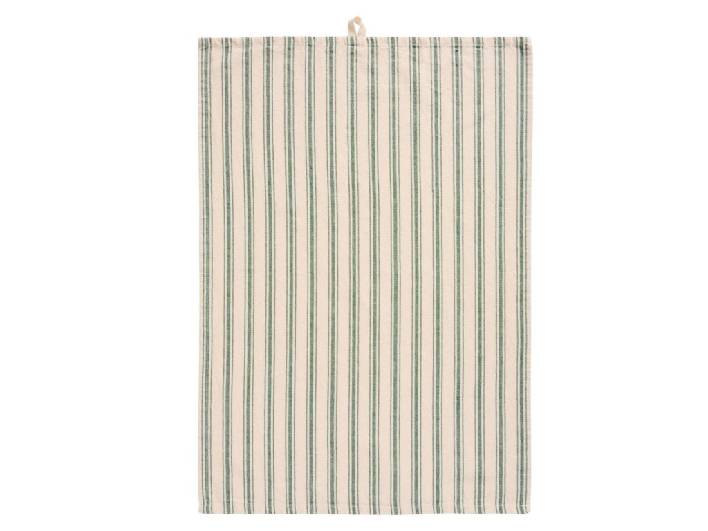 Bavlněná kuchyňská utěrka Franz "Natural / Dark Green Stripes - Thin & Wide" IB Laursen