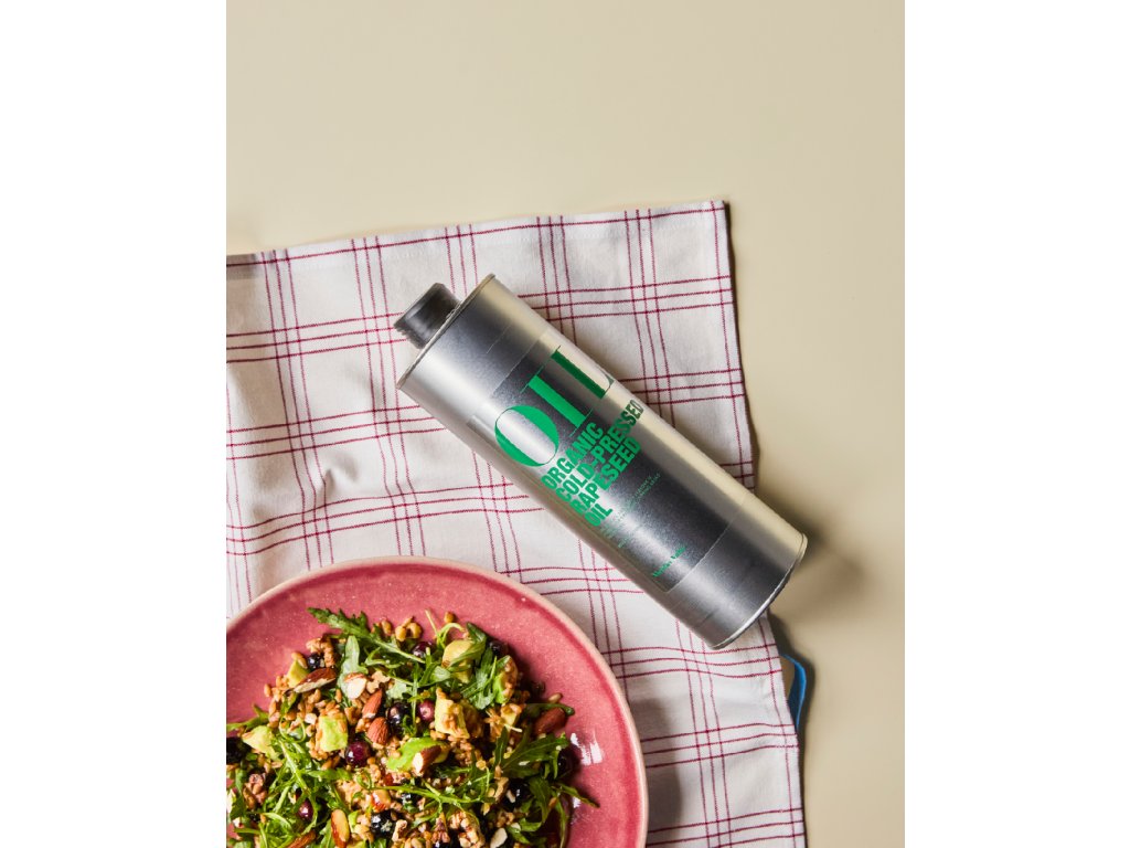 Řepkový olej má objem 1 l a je balený v designové plechové nádobě, které to jednak nesmírně sluší na jakékoliv kuchyňské lince, jednak plní funkci ochrany před slunečním zářením a nežádoucí oxidací.