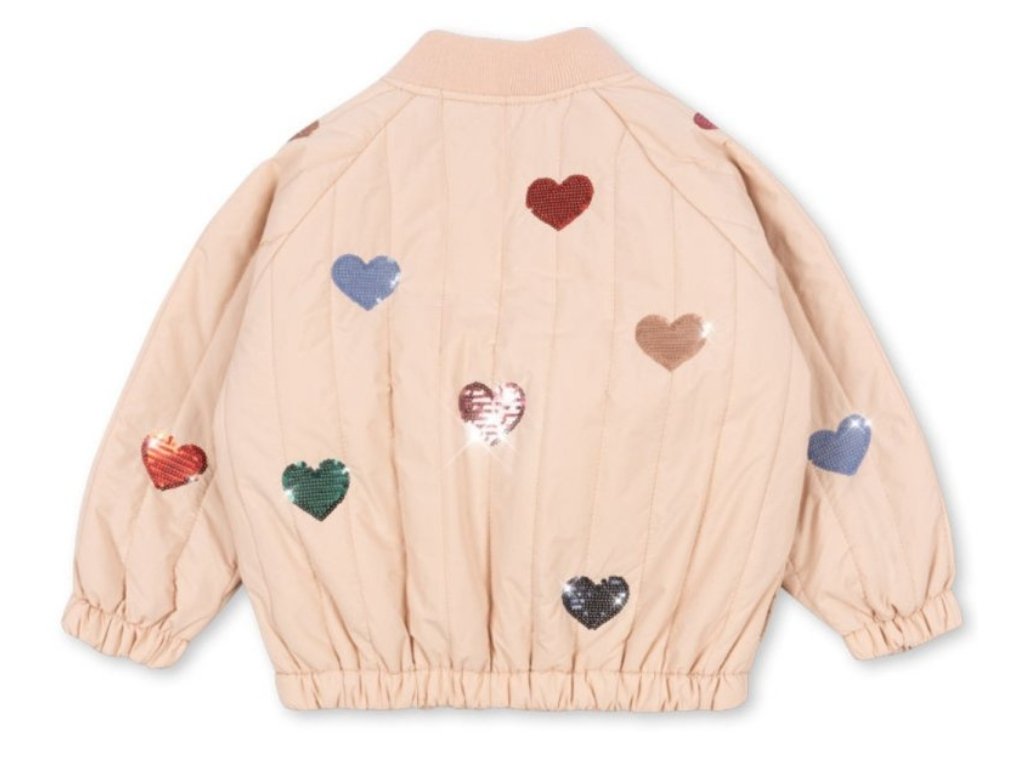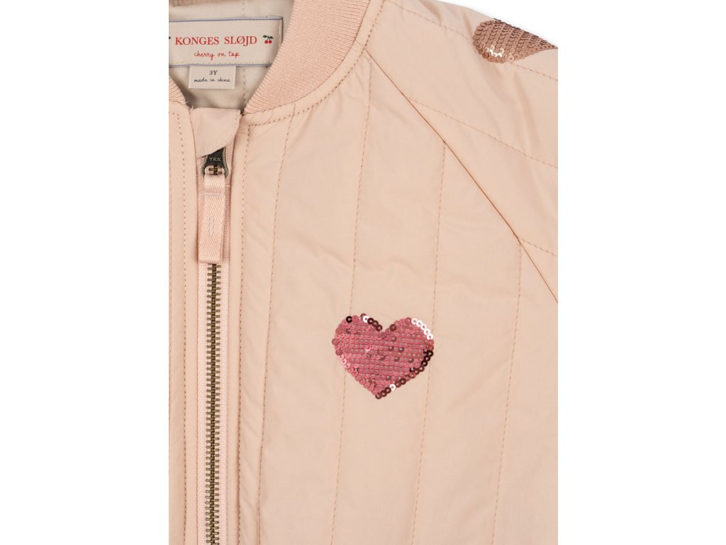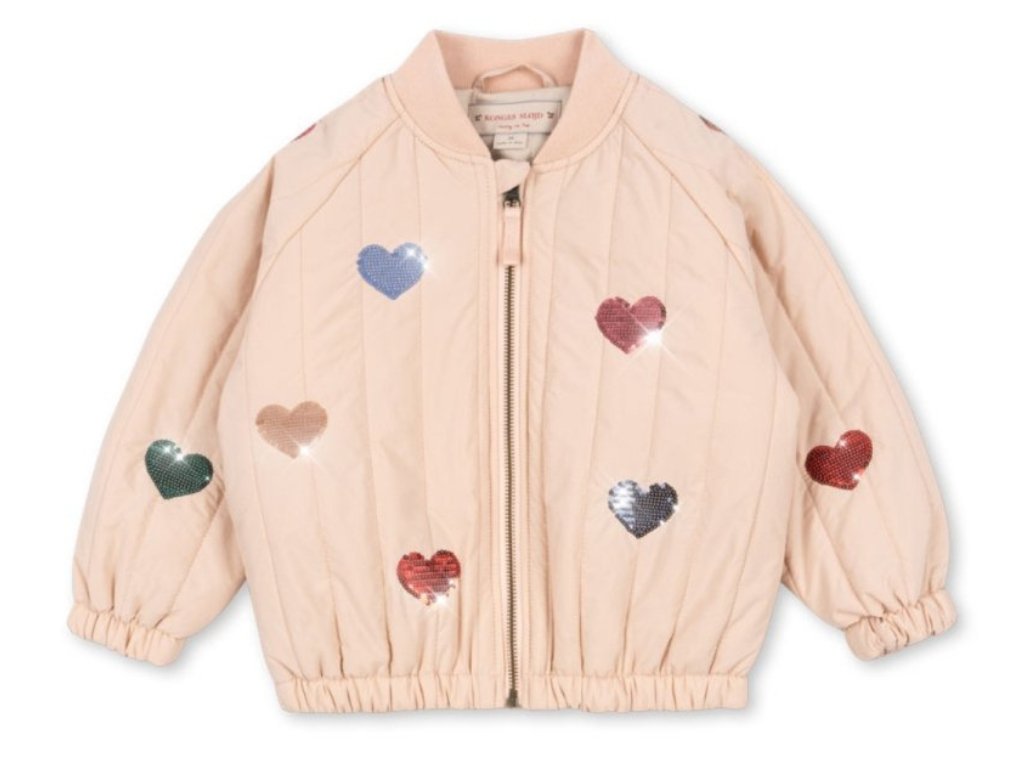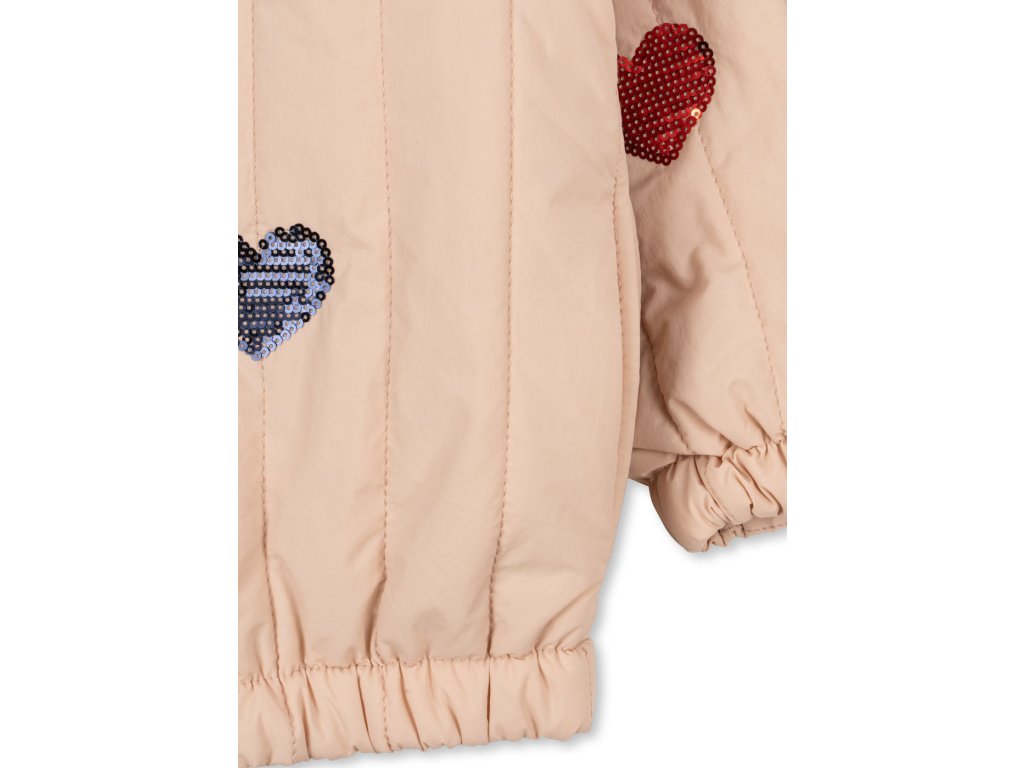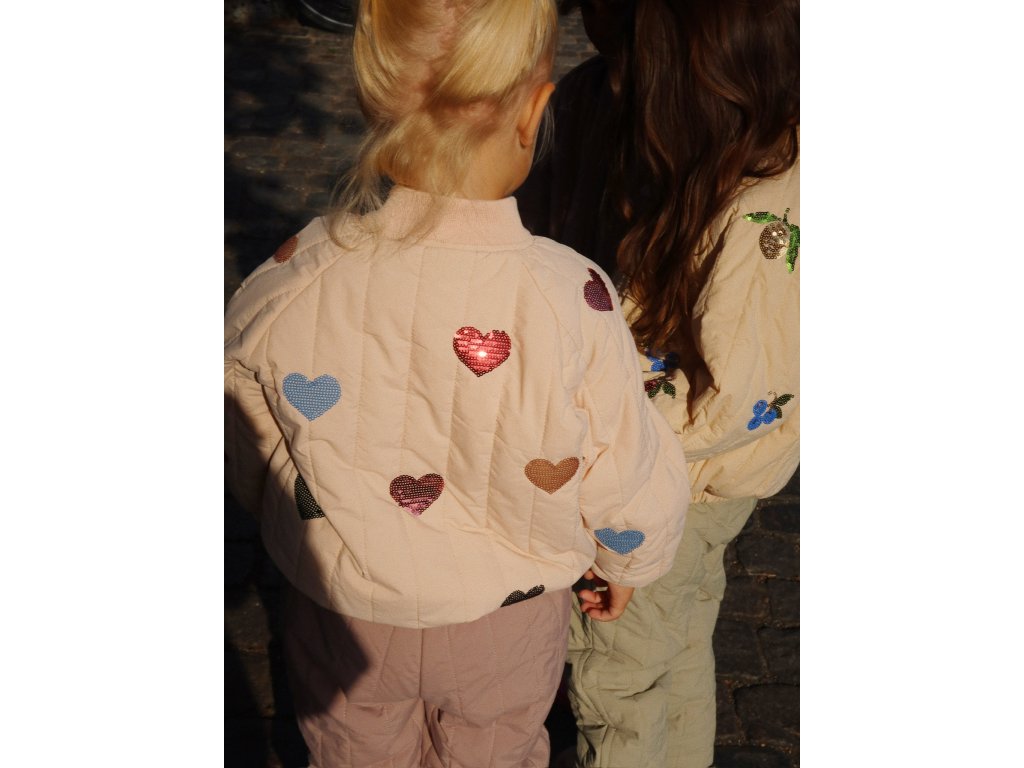 Bomber od dánské značky Konges Sløjd je již stálicí v našich podzimních a jarních kolekcích. Tento v krémové barvě s flitrovými výšivkami srdíček milujeme! Bomber je lehký, snadno ho sbalíte s sebou na cesty, je větruvzdorný a díky povrchové úpravě Bionic Finish® Eco také vodoodpudivý. Využijete ho na podzim, během jara i chladnějšího léta. Hodí se na pobíhání po městě, bez starostí s ním můžete vyrazit na hřiště nebo na výlet třeba do vaší oblíbené zoo.