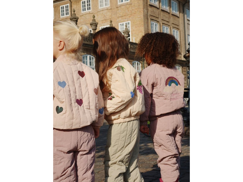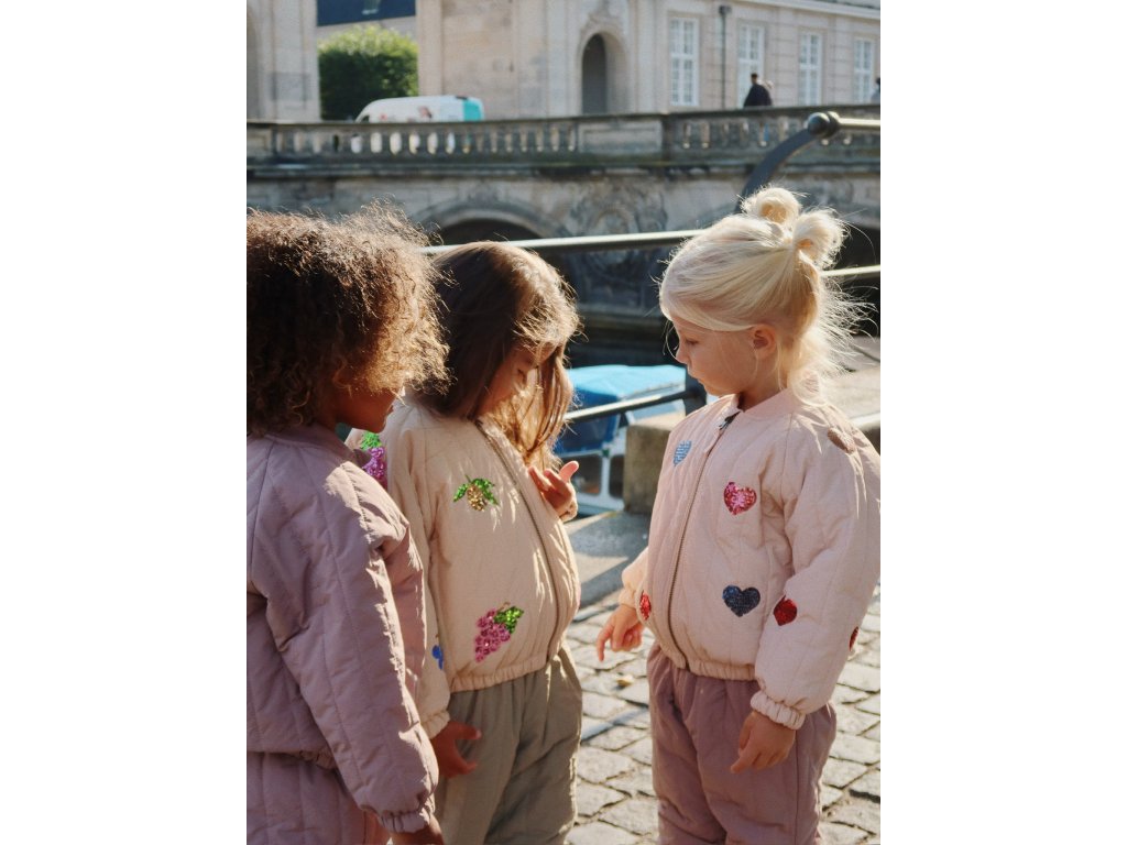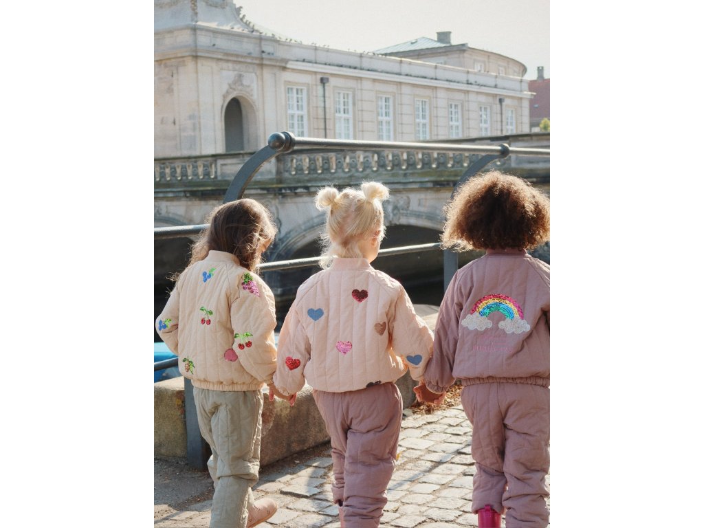 Bomber, jeden z nejpopulárnějších kousků dánské značky Konges Sløjd, má krémovou barvu a zdobí ho flitrové výšivky srdíček. Vaše holčičky v něm budou vypadat naprosto božsky. Nyní s přicházejícím podzimem jej stačí do outfitu doladit například tylovou sukní, rozevlátými šaty, svetrem a hřejivými punčoškami. Bomber má speciální povrchovou úpravu Bionic Finish® Eco, která odpuzuje vodu a nečistoty. Proto se nemusíte bát, že se hned zašpiní. A pokud se tak stane, postačí vám ve většině případů navlhčená houbička nebo hadřík.