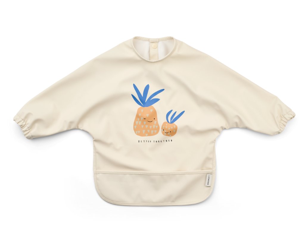 Pro všechny malé začínající jedlíky je jako stvořený tento praktický bryndáček od značky Liewood. Bryndák je vyrobený z nepropustného materiálu, který spolehlivě ochrání oblečení pod ním. Má praktickou kapsičku, která zachytí každé padající sousto, dlouhý rukáv a zapíná se pomocí cvočků v zadní části.