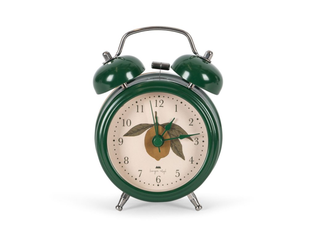 Budík od dánské značky Konges Sløjd je navržen s ohledem na dětskou fantazii a praktičnost. Nádherná lahvově zelená barva a ikonický citronkový motiv potěší každého malého dobrodruha, zatímco kvalitní zpracování zajistí dlouhou životnost. Snadné ovládání umožní dětem naučit se čas snadno a zábavně. Perfektní společník do ranní rutiny, který zároveň funguje jako krásný dekorační prvek.