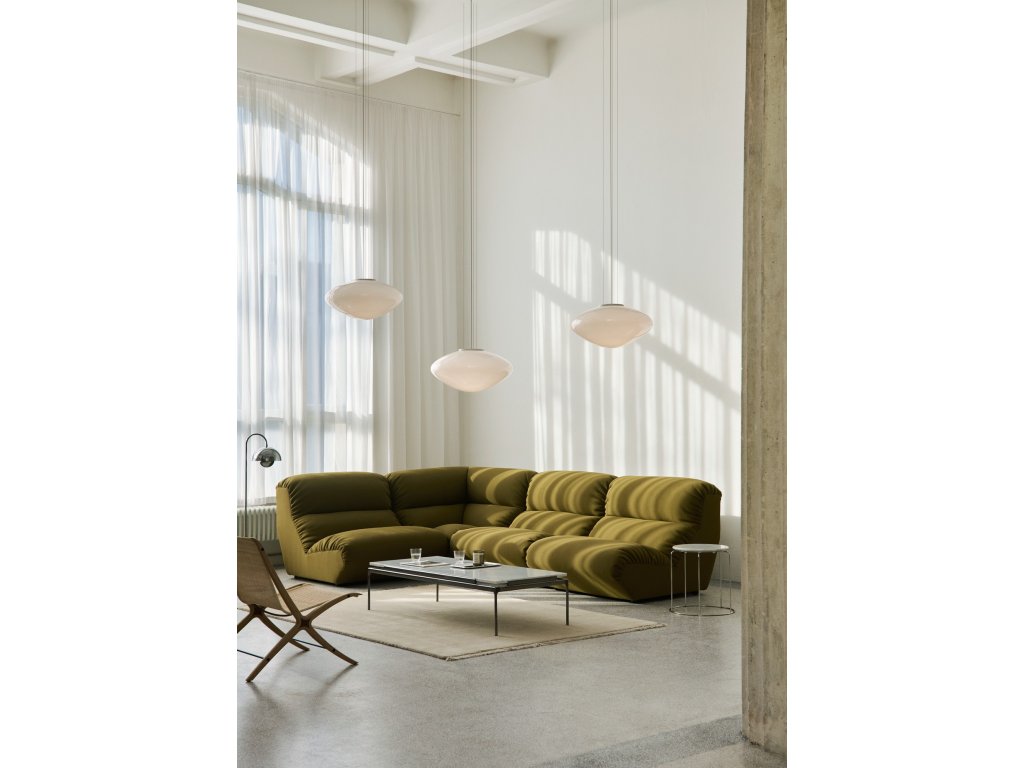 Rohová sedací souprava Hi Lo od &Tradition je jednou z mnoha konfigurací, kterou je možné ze základních dílů vytvořit. Její promyšlená konstrukce až do posledního detailu kombinuje dřevěný rám s chytře instalovanými pružinami v sedáku, které zabraňují prověšení i po letech používání, zatímco vícevrstvé polstrování z HR pěny a polyesterové vaty zajišťuje dokonalé pohodlí. Speciální ochranné krytí se drcenou pěnou na sedáku a opěradle pak garantuje dlouhodobou odolnost, a elegantní kovové konzole umožňují bezpečné spojení jednotlivých dílů při vytváření větší sedací kompozice.