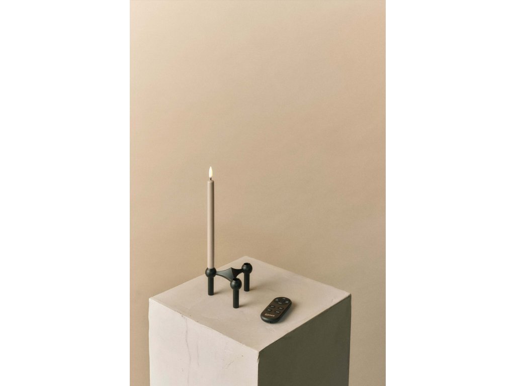Vytvořit kouzelnou atmosféru mihotajících se plamínků nebylo nikdy jednodušší. Stačí jen jedno stisknutí tlačítka. Pořiďte si k LED svíčkám od dánské značky STOFF Nagel dálkový ovladač, který na nich umožňuje nastavit časovač na 4, 6, 8 nebo 10 hodin a upravit intenzitu světla ve 3 úrovních podle nálady.