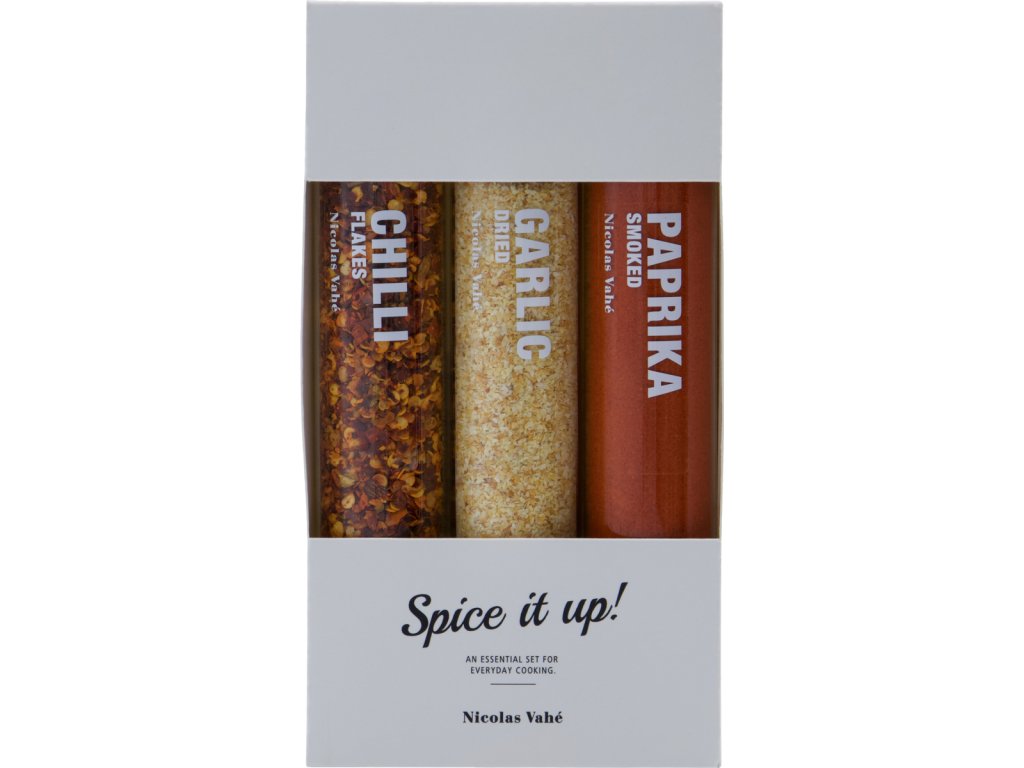 Hledáte dokonalý dárek pro milovníka dobrého jídla? Dárková kazeta od Nicolase Vahé s chilli vločkami, granulovaným česnekem a uzenou paprikou jistě potěší.