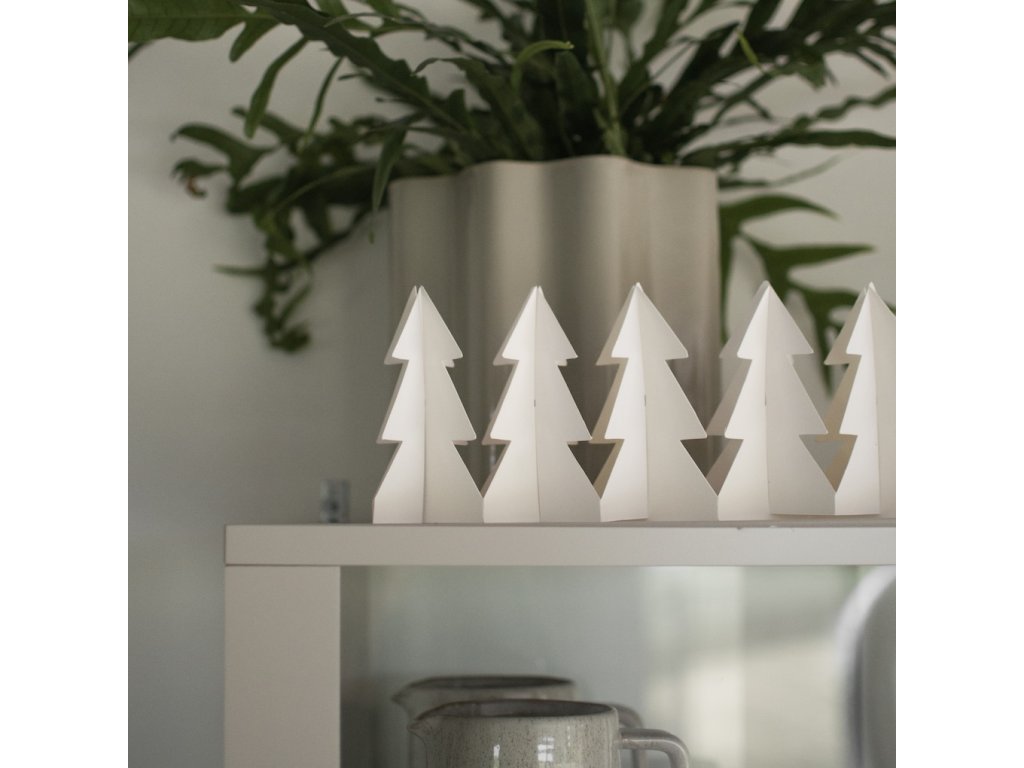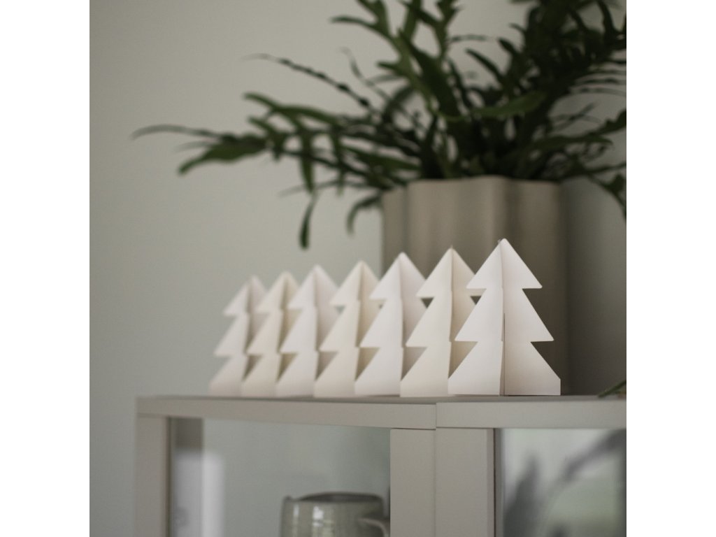 Dekorativní papírová řada stromků od DBKD vnese do vašeho domova něžnou zimní atmosféru. Roztomilé stromečky krásně vyniknou na parapetu, komodě, ale i svátečním stole.