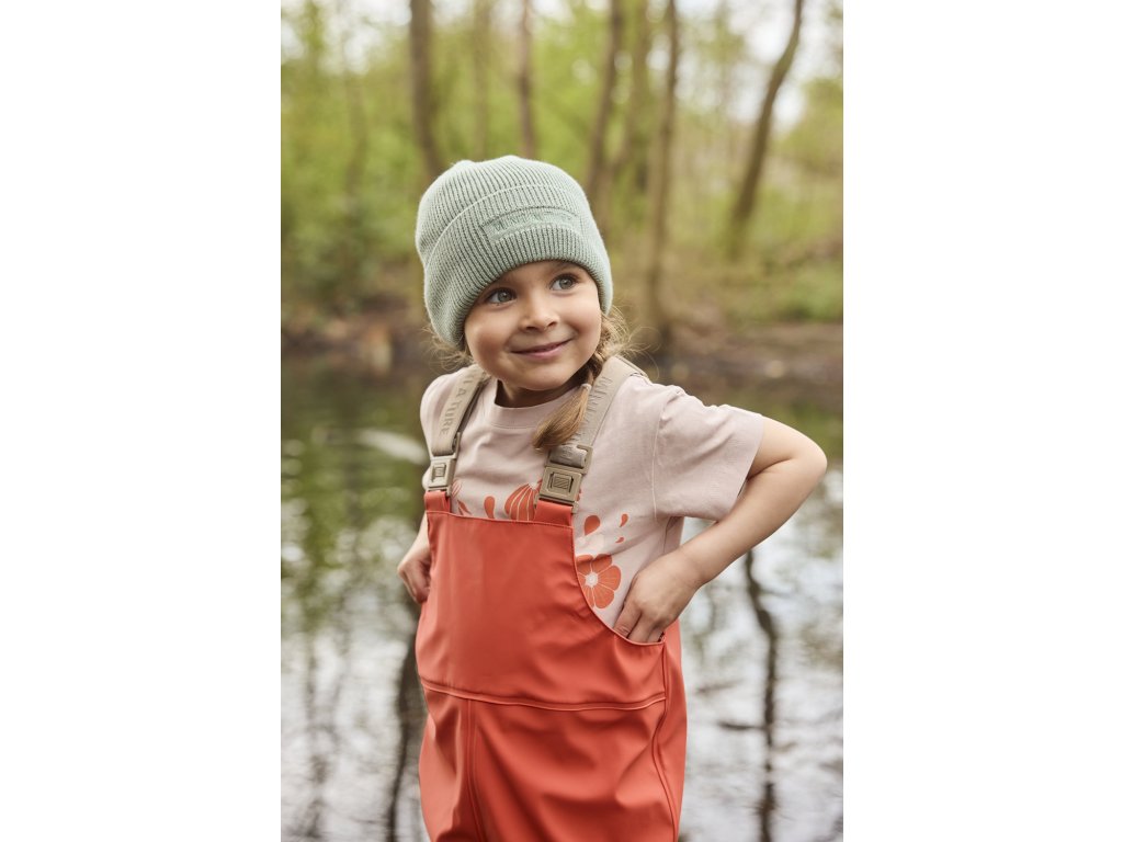 Krásná zeleno-modrá čepice se širokým žebrovaným lemem vašim dětem dokonale padne. Je měkká, příjemně se nosí a skvěle chrání ouška před větrem. Designově je velmi jednoduchá. Na přední straně je pouze výšité logo značky MINI A TURE.