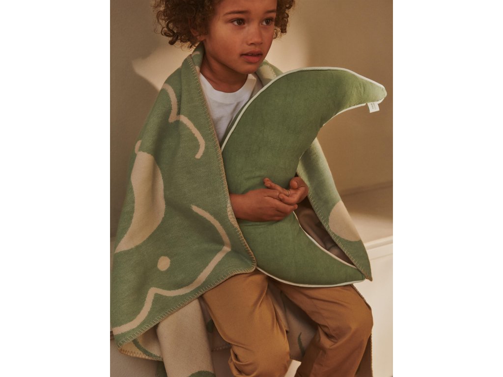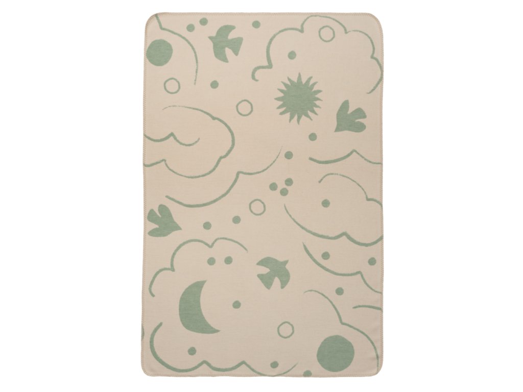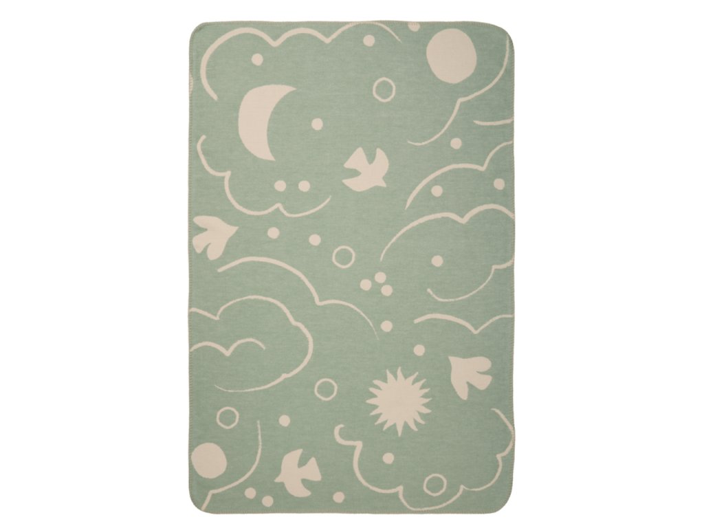 Oboustranná deka v klidné mátové barvě s hravým vzorem nočního nebe je tím nejkrásnějším společníkem na cestu do říše snů. Je ušitá z měkoučké bavlny a krásně doplňuje kolekci hravých doplňků dánské značky ferm LIVING.
