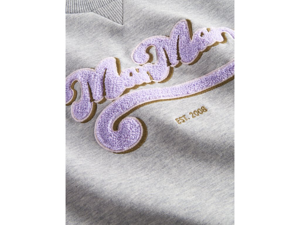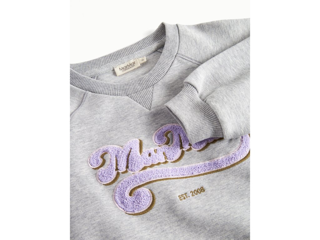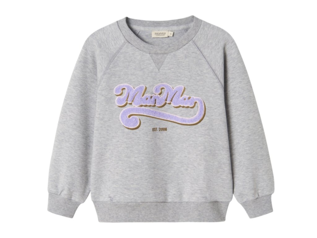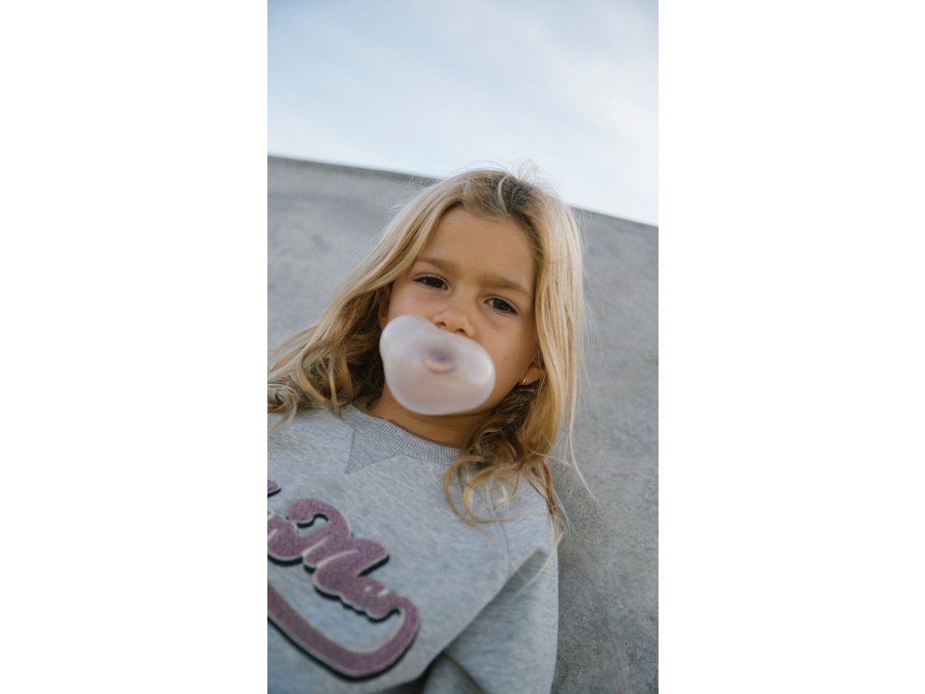 Pohodlná dětská mikina od MarMar Copenhagen. Mikina má světle šedou barvu, širší střih a spadlá ramena pro co nejvíc cool vzhled. Je příjemně teplá, ale zároveň ne moc silná. Vaše malé rebelky ji vynosí v průběhu celého roku. A co na ní milujeme nejvíc? Nádherný fialový nápis s logem značky.