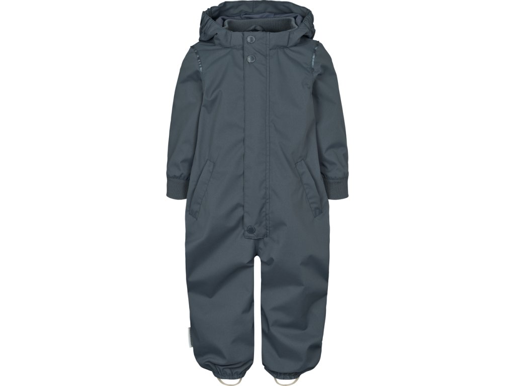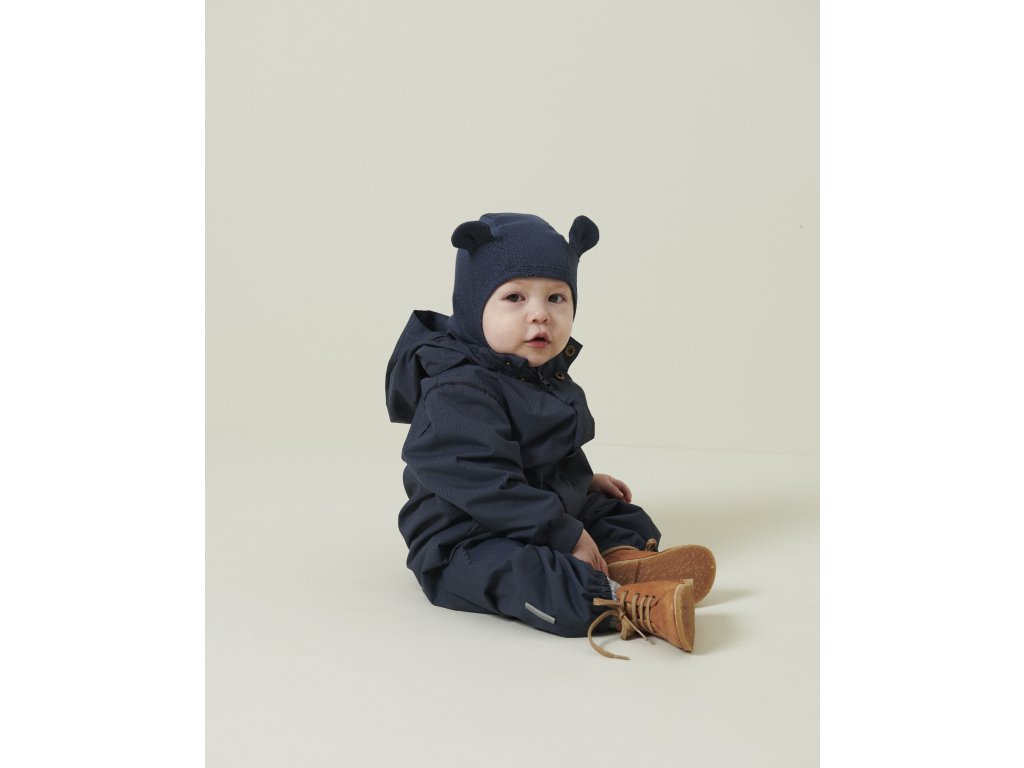 Funkční lehounká kombinéza na jaro a podzim pro děti od značky MarMar Copenhagen. Kombinéza má tmavě modrou barvu, dvě postranní kapsy a zapíná se vpředu na kvalitní YKK zip, který je chráněn vnější légou proti větru a zajištěn patentními knoflíky. Odnímatelná kapuce s gumou chrání před větrem a deštěm. Žebrované manžety rukávů spolu s límcem jsou nejen stylové, ale také pohodlné na nošení. Na nohavicích nechybí odnímatelné pásky přes boty.
