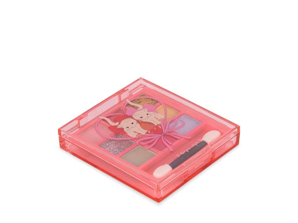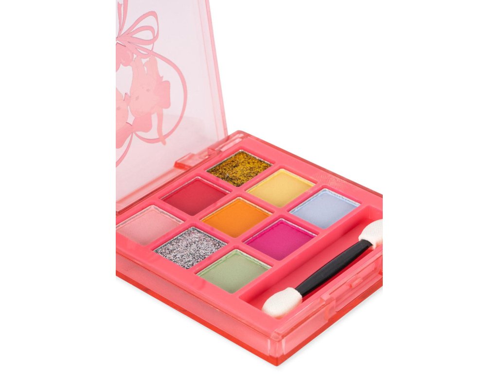 Paletka dětských očních stínů v roztomilé krabičce s kočičkami. Uvnitř té se skrývá celkem 9 odstínů – 7 matných a 2 lesklé. Nechybí ani štěteček na nanášení.