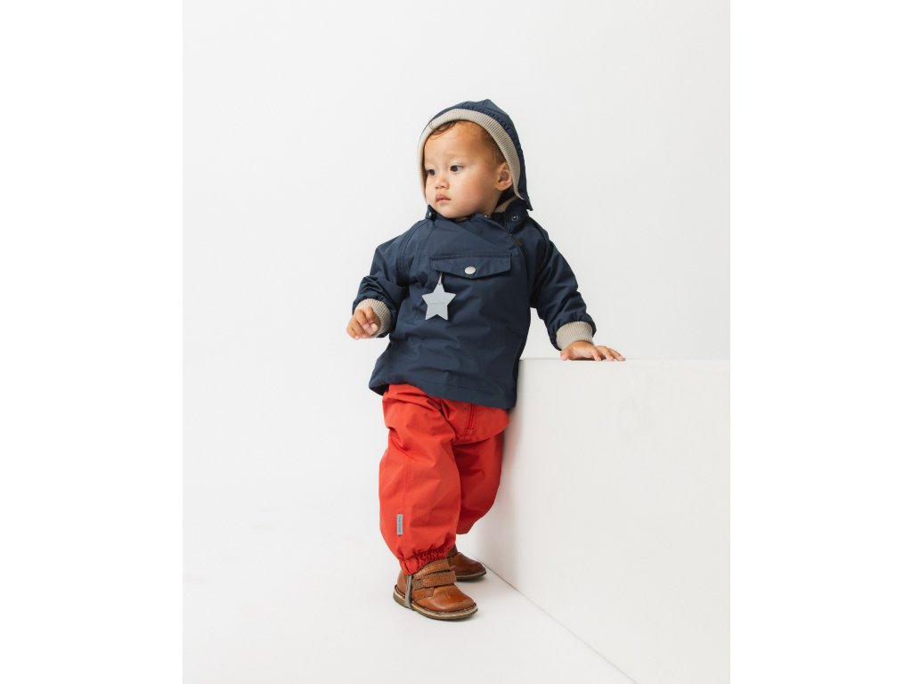 Ikonická bunda MATWAI v tmavě modré barvě z nové kolekce MINI A TURE je navržena pro nejmenší děti. Je 100% větru a voděodolná, díky měkké vnitřní podšívce dostatečně teplá a zároveň prodyšná. Rozepíná se zepředu skrytým šikmým zipem. Má špičatou kapuci, která je připevněna pomocí patentek a lze ji snadno odepnout. Pas je nastavitelný, aby bylo možné bundu lépe přizpůsobit postavě. V přední velké kapse je schovaná reflexní hvězdička a reflexní logo značky je umístěné i na zadní straně bundy.
