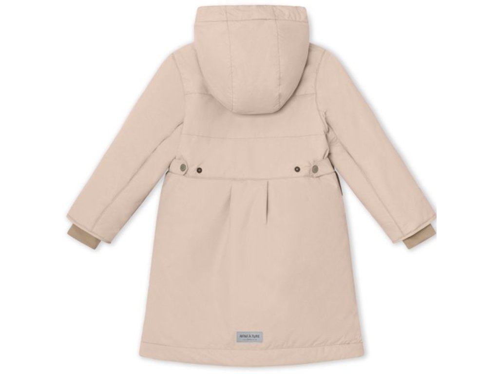 Krásná zimní bunda MINI A TURE, která je třídou sama o sobě. Je 100% větru a voděodolná, prodyšná a dostatečně teplá i na velmi chladnou zimu. Bunda má délku pod kolena. Uvnitř v horní části je bunda podšitá měkkým a hřejivým fleecem, zatímco spodní část bundy je vyteplená materiálem Sorona® Aura, ekologickou alternativou prachového peří. Kapuce je odnímatelná a lze ji utěsnit kolem hlavy pomocí elastické gumičky, aby dovnitř nefoukal vítr. Sněhové manžety na zápěstí jsou vyrobeny tak, aby bylo možné mít palce venku. Kapsy se uzavírají pomocí magnetů. Bunda má dva zipy na bocích pro větší flexibilitu a dva knoflíky na zádech pro vytvoření pěkné siluety. V přední kapse je ikonická reflexní hvězda MINI A TURE.