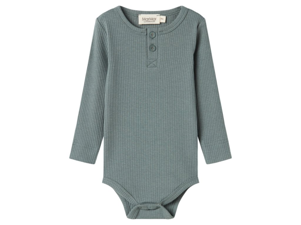 Dětské body z modalu s dlouhým rukávem a knoflíčky "Dusty Green" MarMar