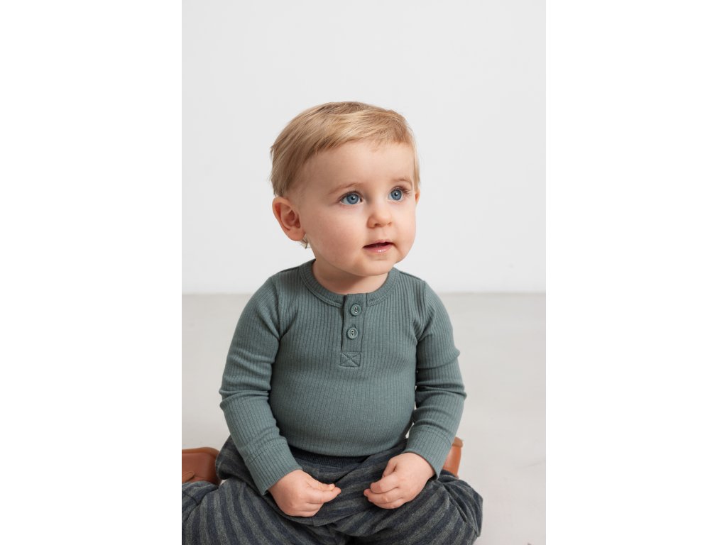 Body s dlouhým rukávem v tmavě zelené barvě z měkoučké organické bavlny a Tencel modalu. Pro maximální pohodlí vašich nejmenších dětí. S knoflíčky u krku a patentkami v rozkroku pro snadné přebalování.