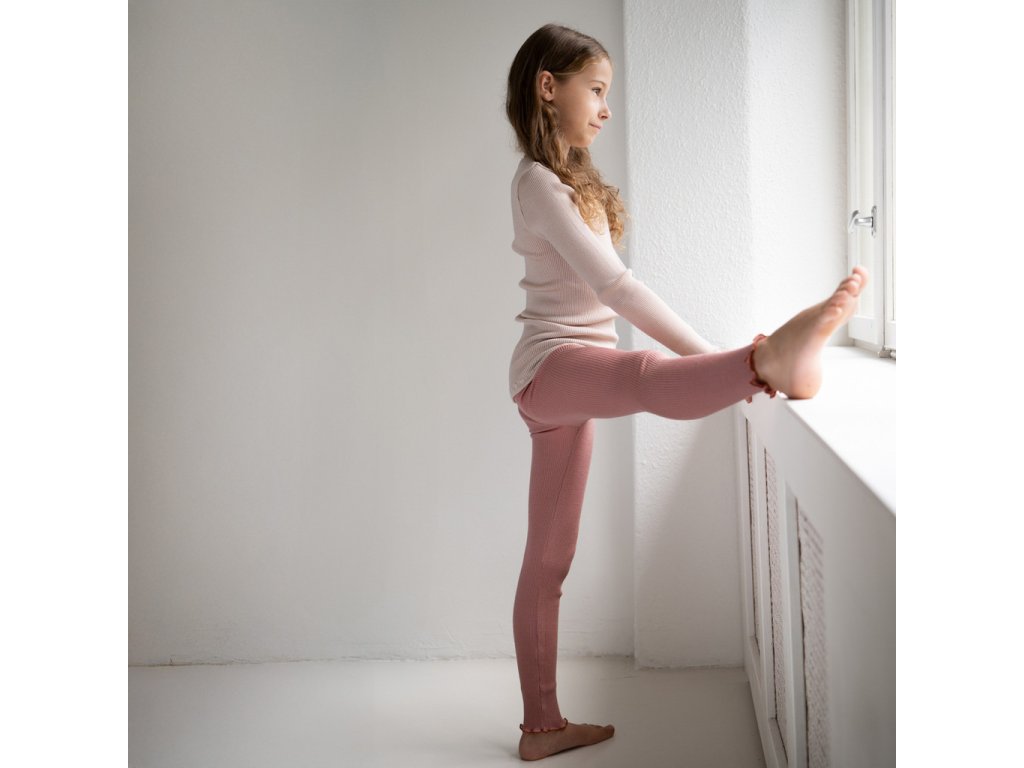Pohodlné dětské legíny z merino vlny v růžové barvě od značky Minimalisma. Legíny jsou lehoučké, jemné na dotyk a díky kvalitnímu zpracování materiálu dokonale prodyšné. Jsou bezešvé, žebrované, zakončené ozdobným lemováním a božsky pružné. V chladném období tvoří společně s tričkem skvělou spodní vrstvu pod teplejší oblečení. Nosit je lze také jako spodní díl pyžama. Merino vlna totiž prokazatelně zlepšuje kvalitu spánku.
