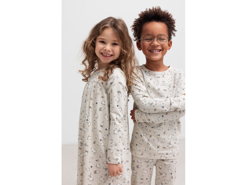 Posnídat v něm sladké palačinky a vrátit se zpátky do peřin. Zachumlat se k pohádkám a nevylézt z něj celý den. Trávit v něm dlouhé chladné večery a hrát si s oblíbenou stavebnicí. Vykoupat se v bublinkách, skočit v něm do postele a číst si pohádky. Pyžamo z organické bavlny a Tencel modalu je prostě boží.