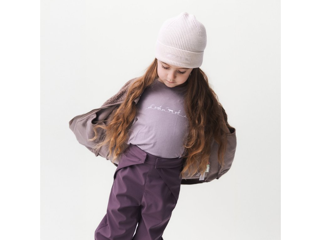 Technicky špičkové fialové softshellové kalhoty pro všechna venkovní dobrodružství vašich malých i větších dětí. Kalhoty mají v pase měkkou nastavitelnou gumu a lze je přizpůsobit pomocí nastavitelných cvočků v přední části. To aby hezky sedly jakékoliv dětské postavě. Nemají podlepené švy, ale jejich materiál je vysoce vodoodpudivý. Zdobí je praktické reflexní prvky s logem značky MINI A TURE.