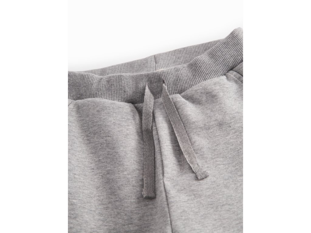Stylové tepláky volného střihu pro vaše děti. Tepláky mají elastický pas se zavazováním na šňůrku, šedou barvu a na zadní kapsičce výšivku písmenka M.