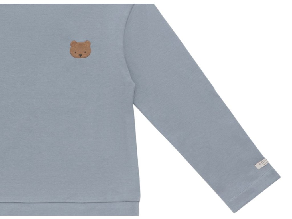 Dětské triko s dlouhým rukávem ve světle modré barvě od značky Donsje okouzlí svým perfektním střihem a vysokogramážním zpracováním bavlny, které zaručuje mimořádnou kvalitu, měkkost a odolnost. Vaši malí i větší dobrodruzi se v něm budou cítit skvěle. Tričko má na hrudníku roztomilou ikonickou výšivku medvídka a ležérní žebrování kolem krku.
