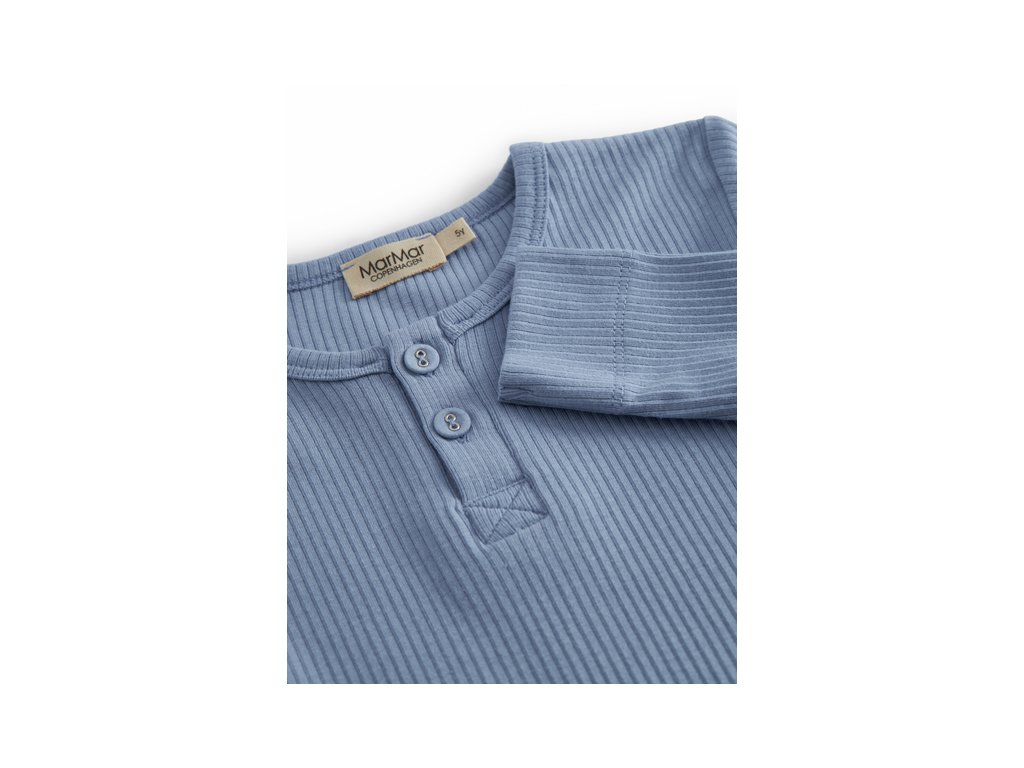 Žebrované tričko s dlouhým rukávem od MarMar Copenhagen přichází s dokonalou modrou barvou a je ještě měkčí a příjemnější než kdy dřív! Díky organické bavlně a Tencel modalu je tak pohodlné, že ho vaše holčička nebude chtít sundat. Prodloužená délka udrží záda hezky v teple, ať už při běhání venku, nebo při válení doma. A co na tom, že ho budete prát pořád dokola? Tvar i barva naneštěstí zůstanou stále stejné.