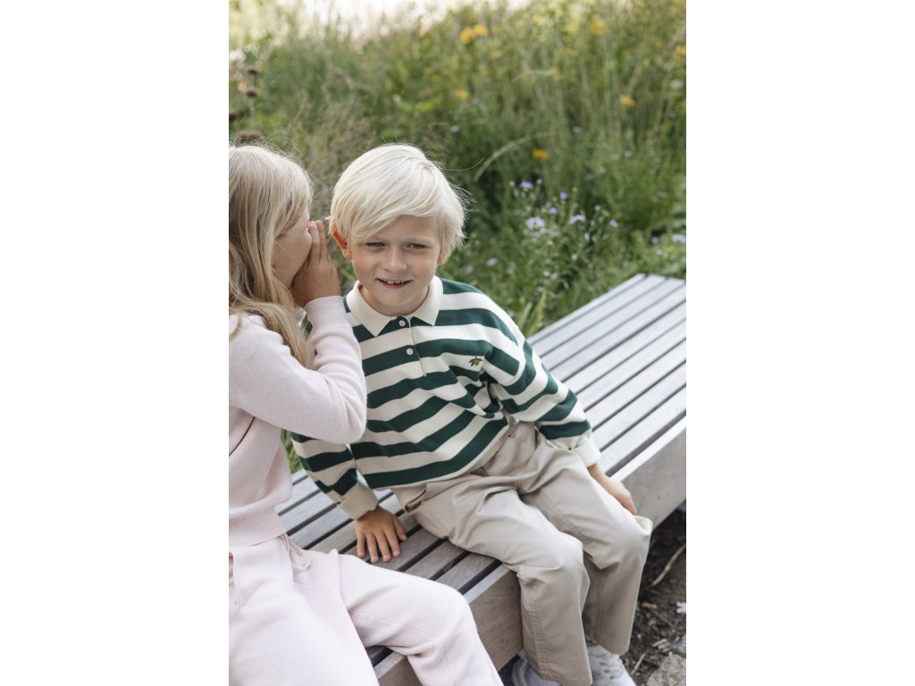 Stylový kousek jako stvořený do nadcházejího podzimu i zimy. Tím je krémové pruhované polo tričko od Konges Sløjd s roztomilou výšivkou citronu. Tričko má límeček, který dodá vašemu malému gentlemanovi na eleganci, zatímco měkoučká a prodyšná bavlna zajistí maximální pohodlí.