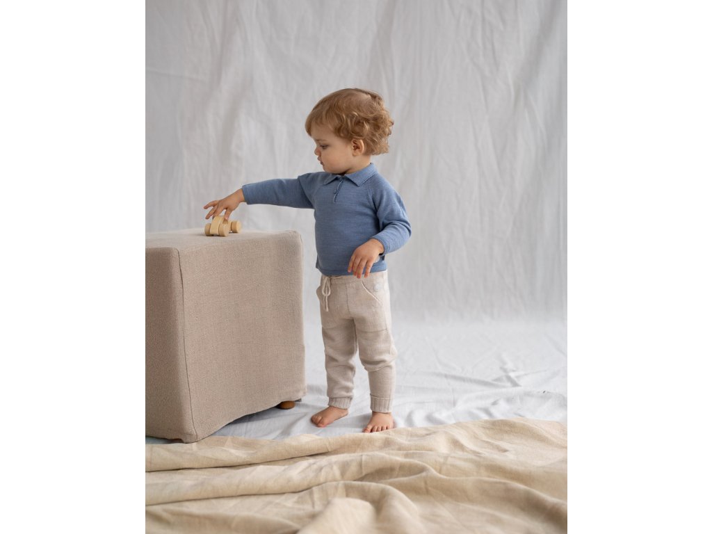 Svetřík pro děti je vyrobený ze 100% merino vlny té nejvyšší kvality a měkkosti. Svetřík má klasický střih, lehce spadlé rukávy a u krku elegantní límeček pro malé gentlemany.