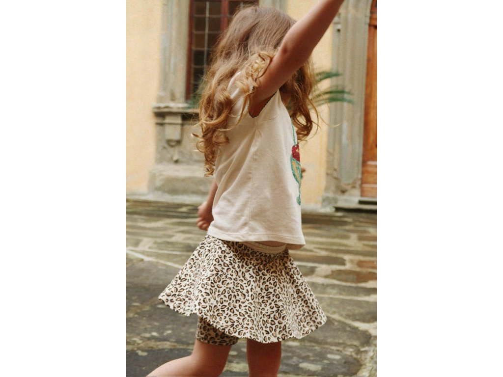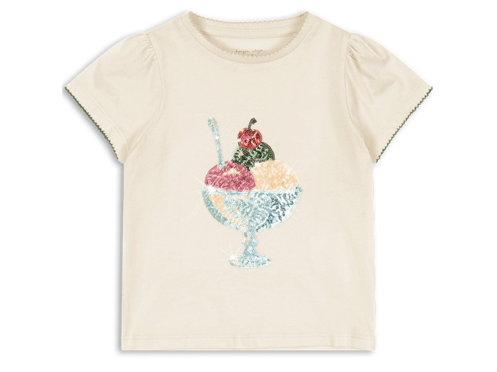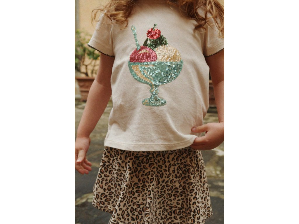 Dětské triko z měkoučké organické bavlny od dánské značky Konges Sløjd si vaše holčičky zamilují. Triko má elegantní krátké rukávy s volánky a je zdobené výšivkou zmzlinového poháru s flitry. Hodí se k sukýnce, klasickým džínům, šortkám i k legínám.