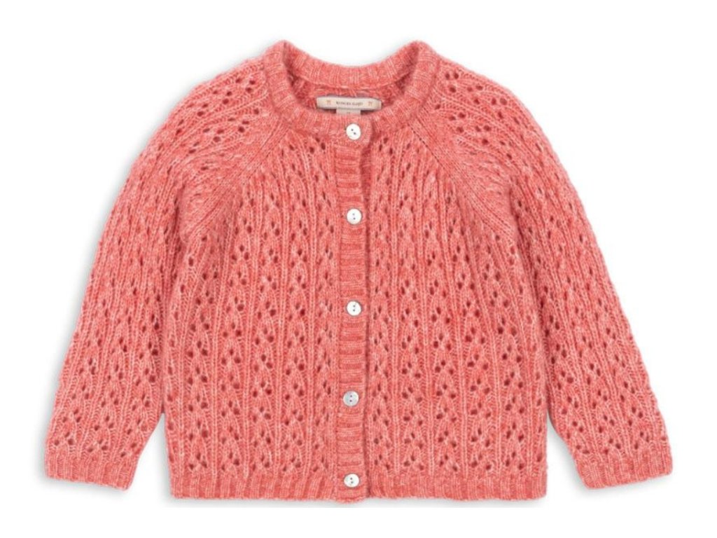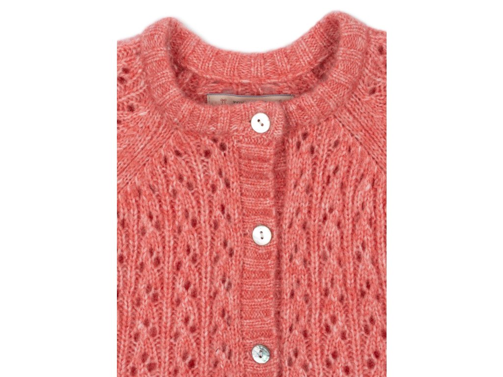 Klasický kardigan od značky Konges Sløjd je tak měkký a příjemný, že se do něj budete chtít sami zachumlat. Je ušitý ze směsi hřejivé vlny a má nádhernou výraznou korálově růžovou barvu. Je to přesně ten kousek, který vaše malá unosí kdykoliv v průběhu roku, když bude zrovna chladněji.