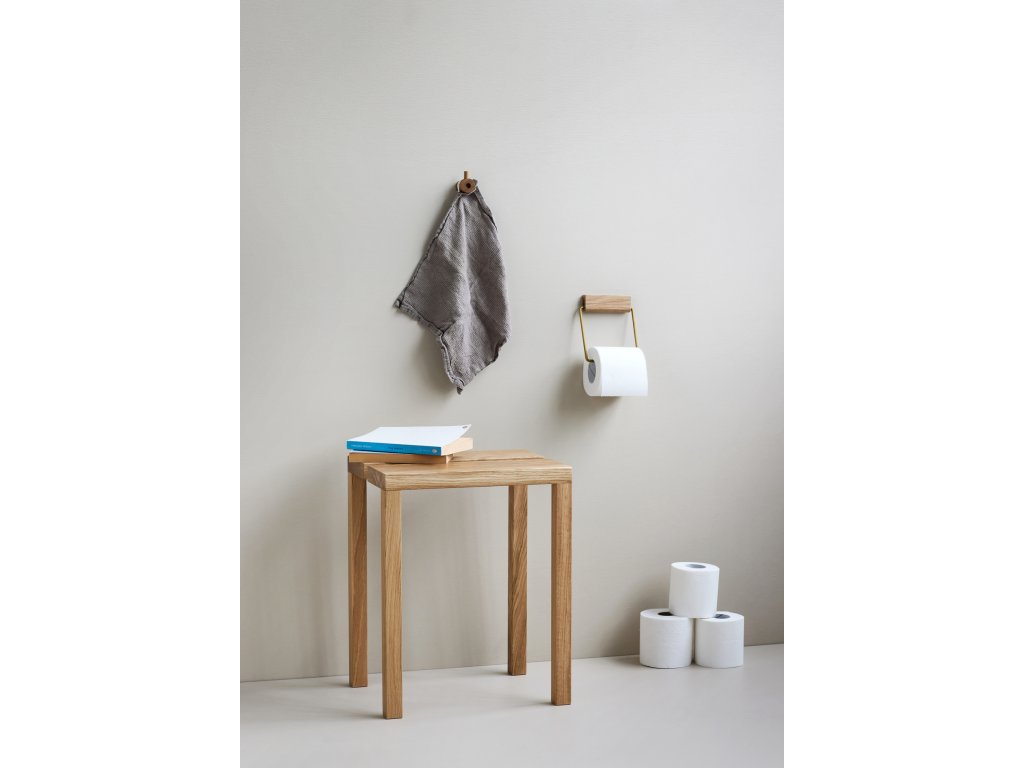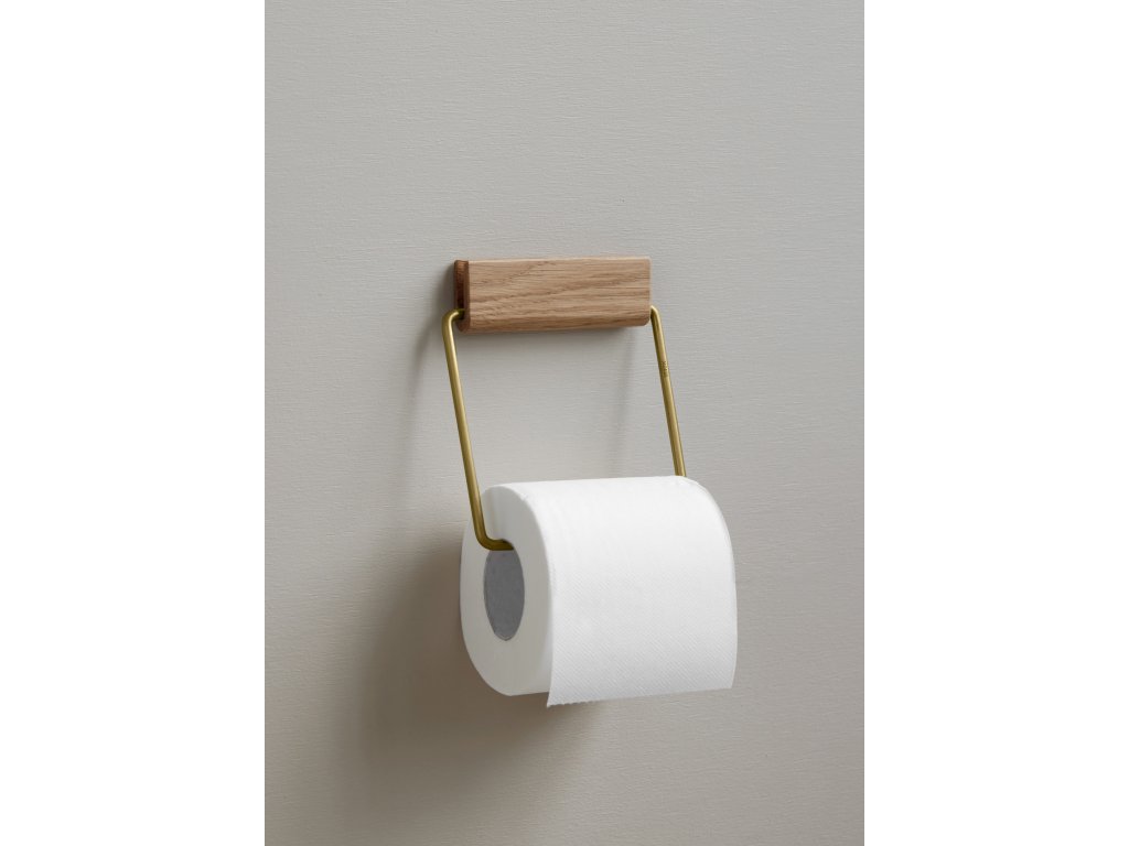 Držák na toaletní papír od dánské značky MOEBE potěší všechny milovníky jednoduchého a funkčního designu. Držák je vyrobený z mosazi a certifikovaného dubového dřeva, které je ošetřeno lakem na vodní bázi, proto se perfektně hodí pro použití ve vlhkém prostředí.