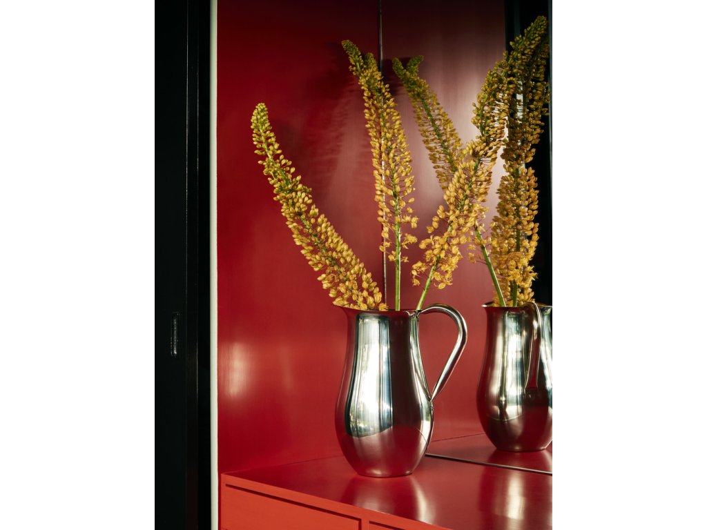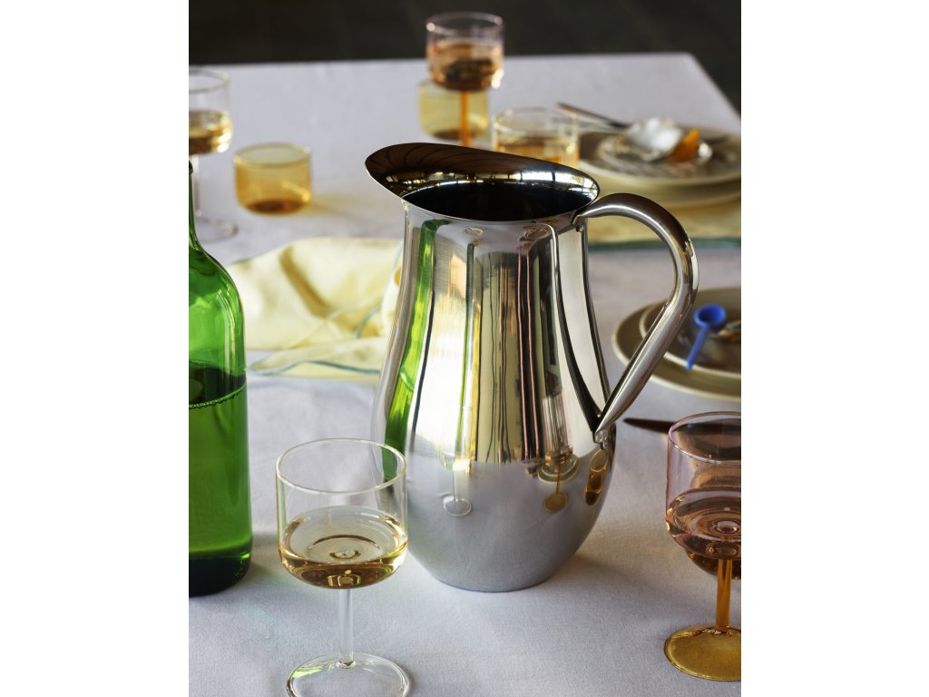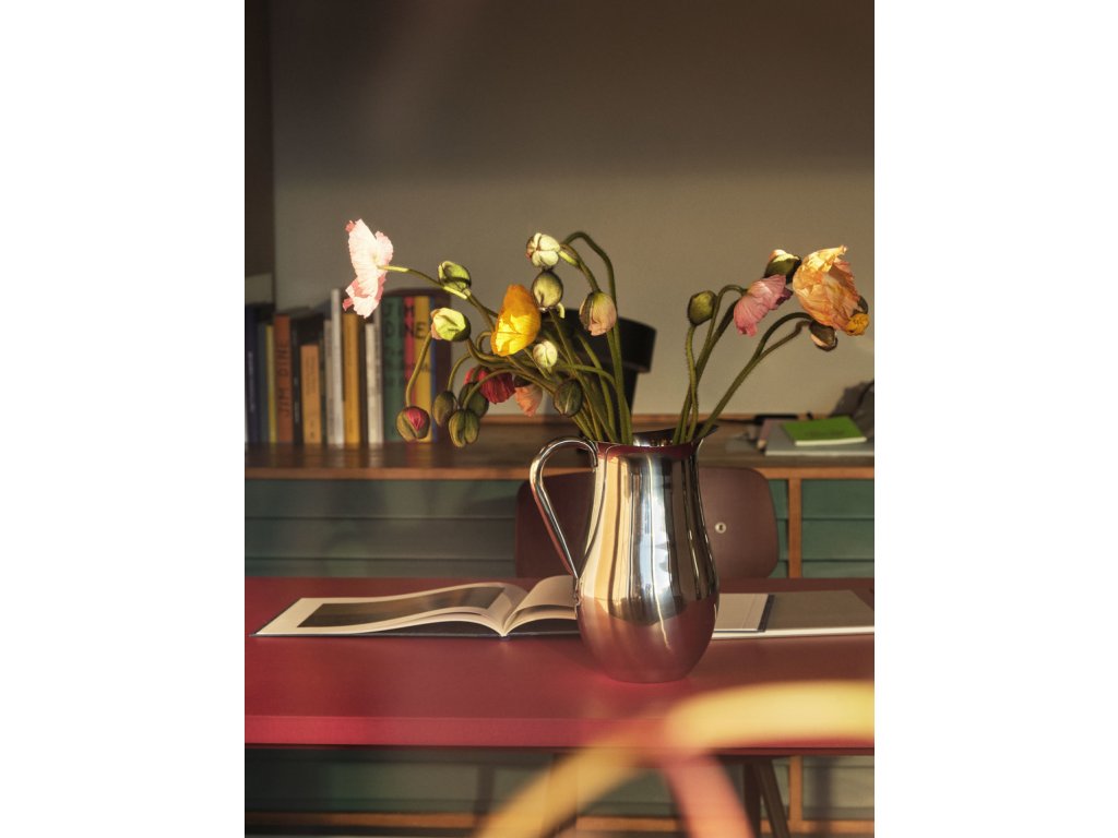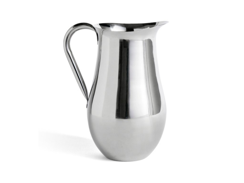 Džbán od značky HAY je vyrobený z vysoce odolné nerezové oceli a má lesklý stříbrný povrch. Uplatnění najde nejen ve vaší kuchyni na podávání nápojů, ale také kdekoliv na polici, komodě, parapetu v podobě stylového doplňku nebo vázy na květiny. Dostupný ještě v menší velikosti.