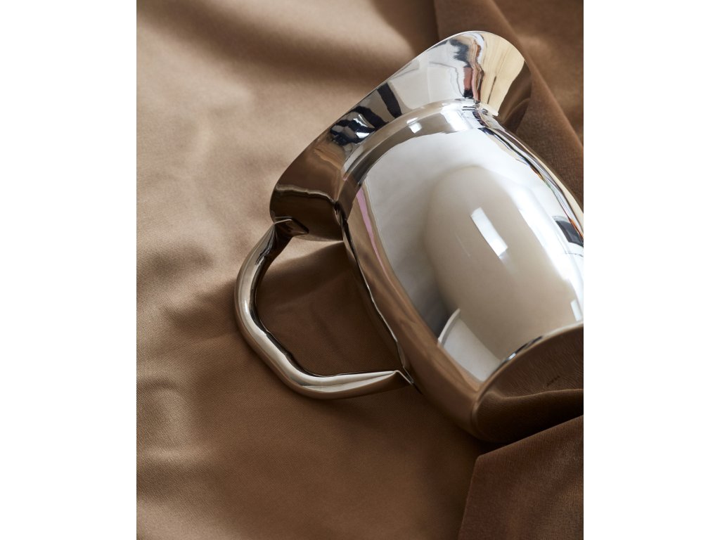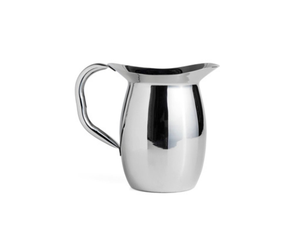 Džbán od značky HAY je vyrobený z vysoce odolné nerezové oceli a má lesklý stříbrný povrch. Uplatnění najde nejen ve vaší kuchyni na podávání nápojů, ale také kdekoliv na polici, komodě, parapetu v podobě stylového doplňku nebo vázy na květiny. Dostupný ještě ve větší velikosti.