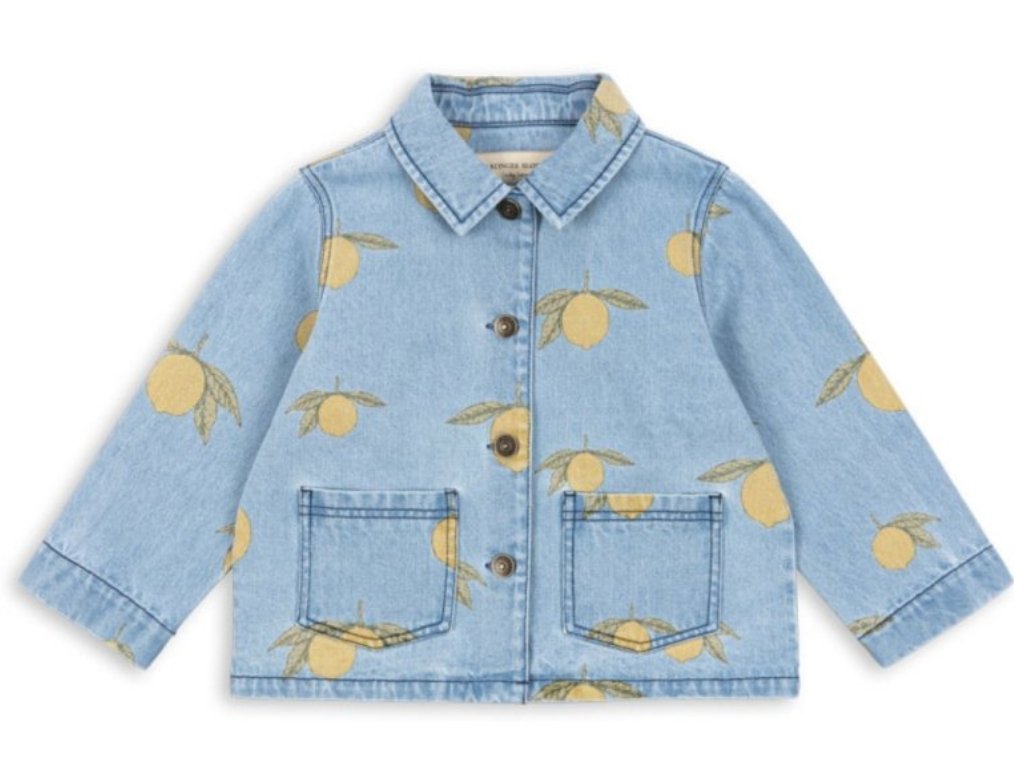 Dětská bunda volnějšího střihu od dánské značky Konges Sløjd s roztomilým motivem citronků pro všechny malé rošťáky i neposedné princezny. Bunda je vyrobena z jemné, ale odolné džínoviny, která zaručuje pohodlí i při celodenním nošení. Zapíná a rozepíná se klasicky pomocí knoflíků uprostřed.