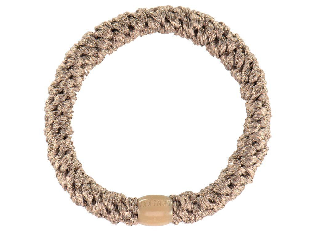 Béžová gumička se zlatými třpytkami do vlasů od značky Bon Dep.