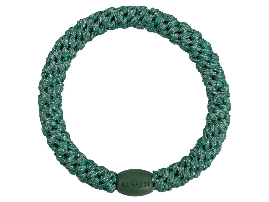 Tmavě zelená třpytivá gumička do vlasů od značky Bon Dep.