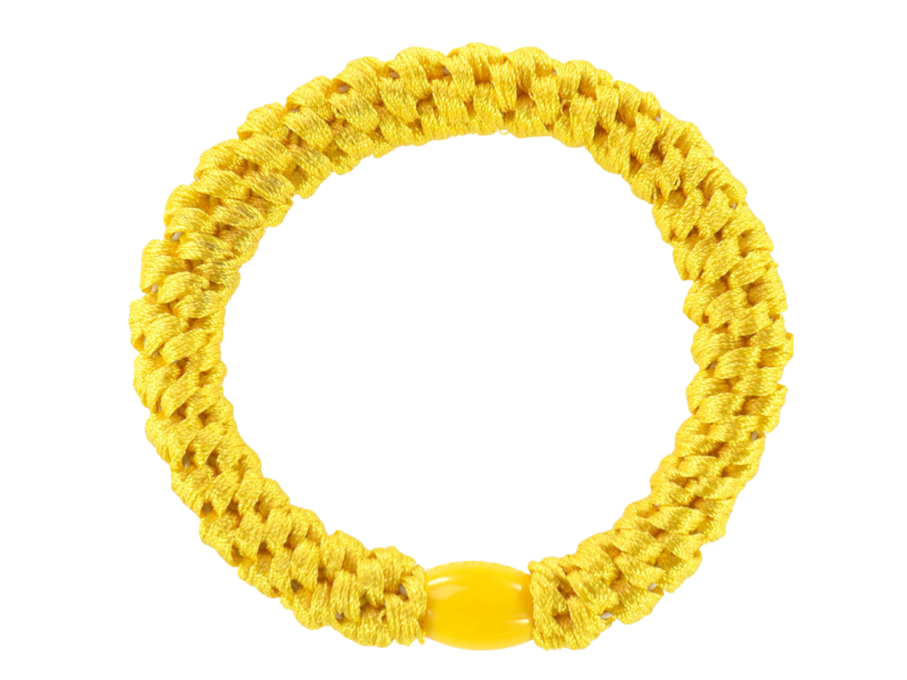 Žlutá gumička do vlasů od značky Bon Dep. V nádherné třpytivé verzi.