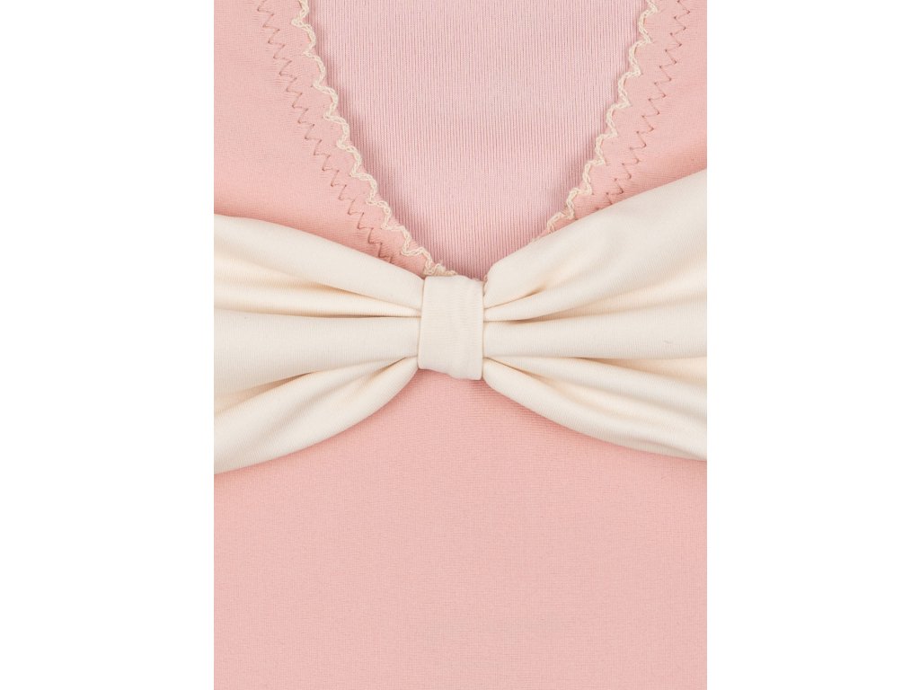 Jednodílné růžové plavky od značky Konges Sløjd pro malé i větší slečny. Plavky zdobí v přední části roztomilá ouška a kočičí tlamička, v zadní části pak elegantní výstřih do V s krémovou mašlí.