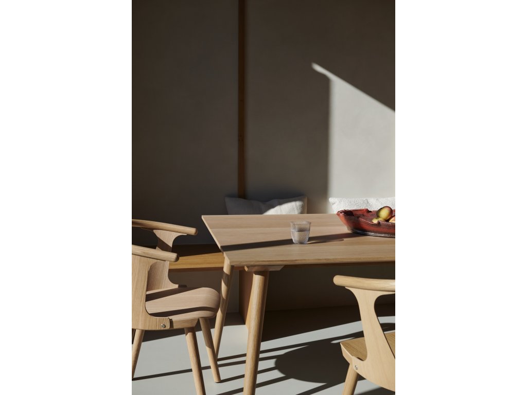 Tradiční skandinávský design a pečlivá řemeslná práce spojená s využíváním masivního dřeva charakterizuje celou kolekci In Between. Tu exkluzivně pro značku &Tradition navrhl designér Sami Kallio. Jídelní stůl SK5 vyniká svými jednoduchými, ale sofistikovanými liniemi, krásou a funkčností. Je vyrobený z prvotřídního dubového dřeva, které je pevné a vysoce odolné proti opotřebení. Lakovaná povrchová úprava mu propůjčuje eleganci, ochranu a vám velice usnadňuje jeho údržbu.