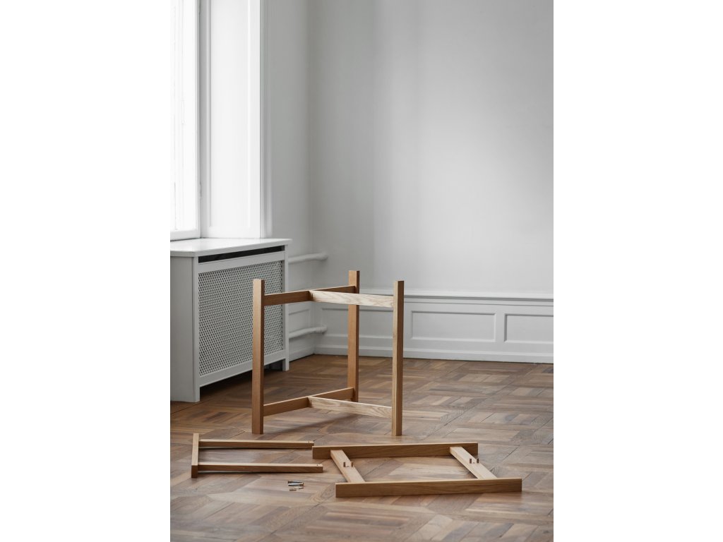 Rectangular Table od dánské značky MOEBE je stůl, který spojuje čistý skandinávský design s chytrou funkčností. Minimalistická konstrukce ze dvou T-rámů a pevné stolové desky působí lehce, přesto je stůl stabilní a připravený na každodenní život – od rychlé snídaně až po dlouhé večeře s přáteli.