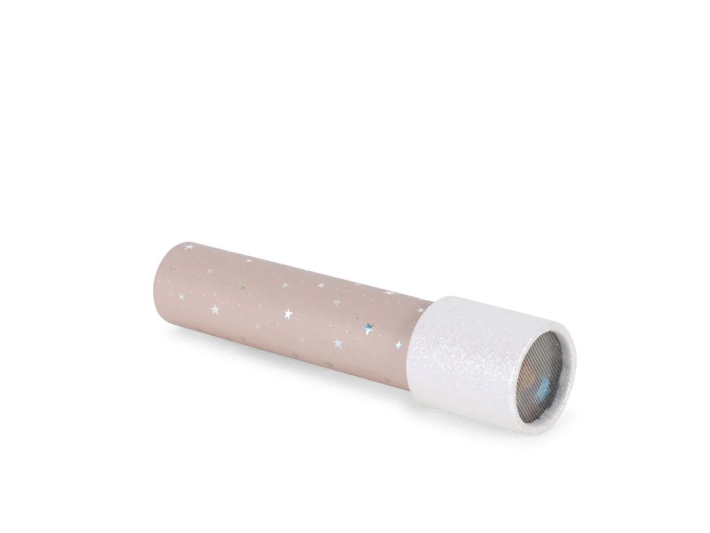 Dětský kaleidoskop v růžové barvě se stříbrnými hvězdičkami od dánské značky Konges Sløjd. Tato generacemi prověřená hračka stále baví nejen zvídavé děti, ale i jejich rodiče, babičky a dědy. Nakoukněte dovnitř a nechte se vtáhnout do magického světa barevných obrazců, stačí pootočit a vše se ve chvíli promění.