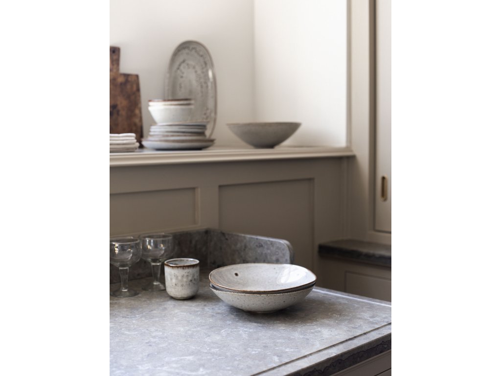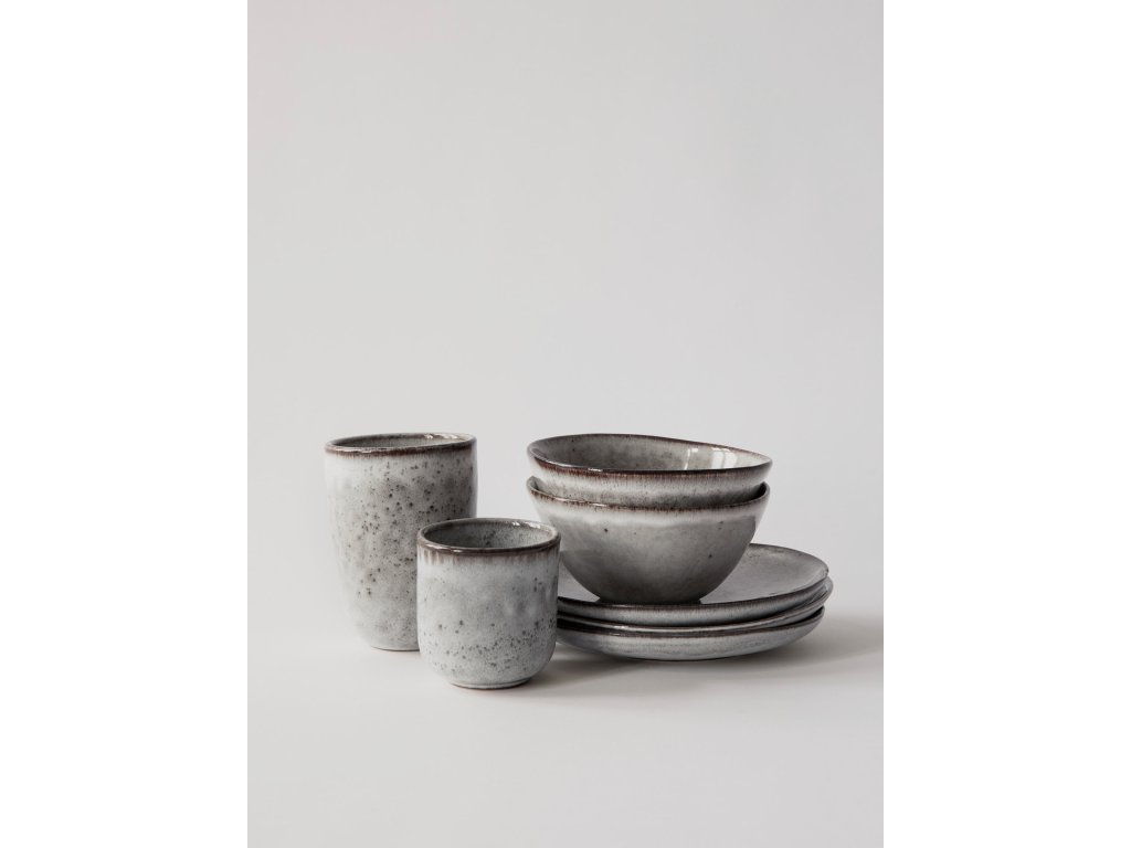 Ručně vyrobený hrnek v neutrální šedé barvě s hnědým okrajem a lesklým povrchem od švédské značky Tell Me More si vás získá svou přirozenou krásou. Díky reaktivní glazuře, která odhaluje své kouzlo až při vypalování, vytváří nádherné variace barev a detailů, proto je každý kousek naprostým originálem.