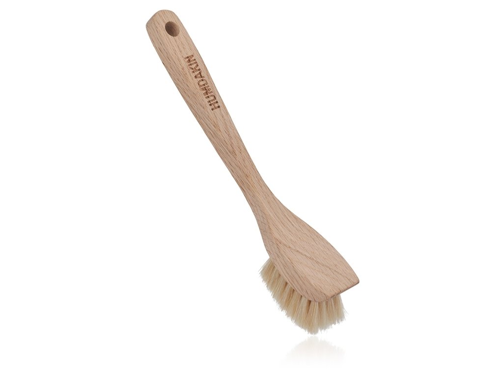 Kartáč na mytí nádobí od dánské značky Humdakin je vyroben ze světlého dubového dřeva se štětinkami z Tampica. Štětiny jsou odolné, pružné, pevné, a proto ideální nejen na každodenní mytí nádobí, ale i na abrazivnější a důkladnější čištění hrnců a pánví.