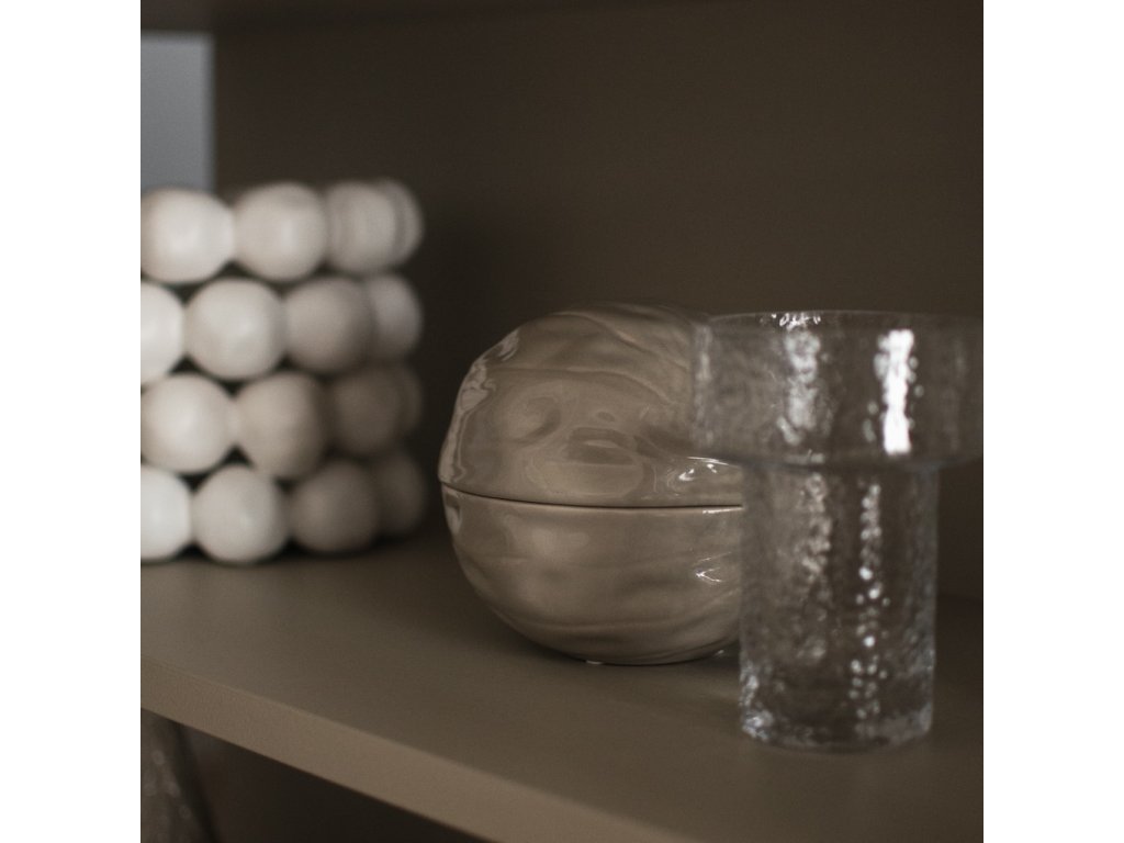 Dóza má velmi jemný, minimalistický design, který v kombinaci s přírodními zemitými tóny působí elegantně a zároveň útulně. Díky keramickému provedení je navíc velice odolná a také snadná na údržbu – bez obav ji můžete umývat v myčce nádobí.
