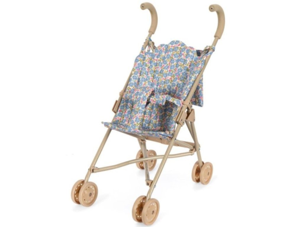 Vaše holčičky si zamilují sportovní kočárek pro panenky od dánské značky Konges Sløjd. Tento má v základu béžovou barvu a zdobí ho modré a růžové květinky.
