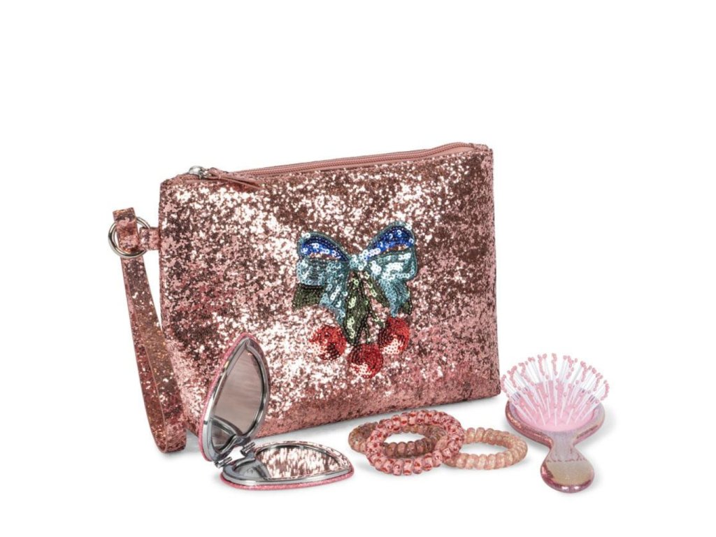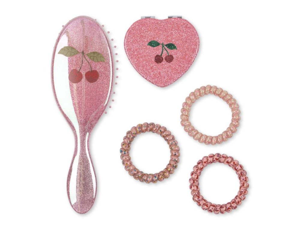 Tahle rozkošná růžová taštička s třešničkami a třpytivými flitry je snem každé malé princezny! V krásném designu od Konges Sløjd se skrývá vše, co vaše parádnice potřebuje pro svou kosmetickou rutinu.